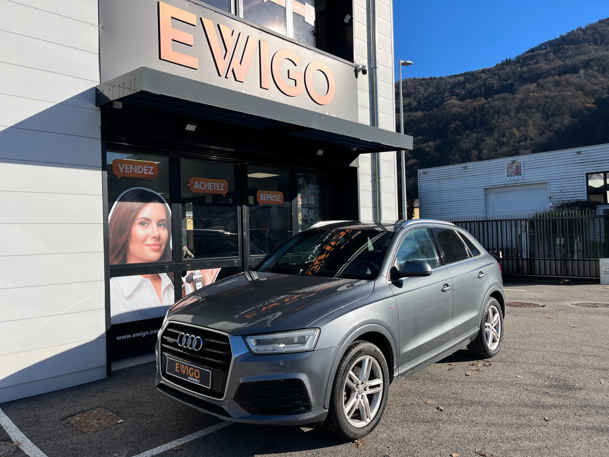 AUDI Q3 Gris 2015 - 2l TDI 185ch AMBITION LUXE QUATTRO S-LINE + ATTELAGE