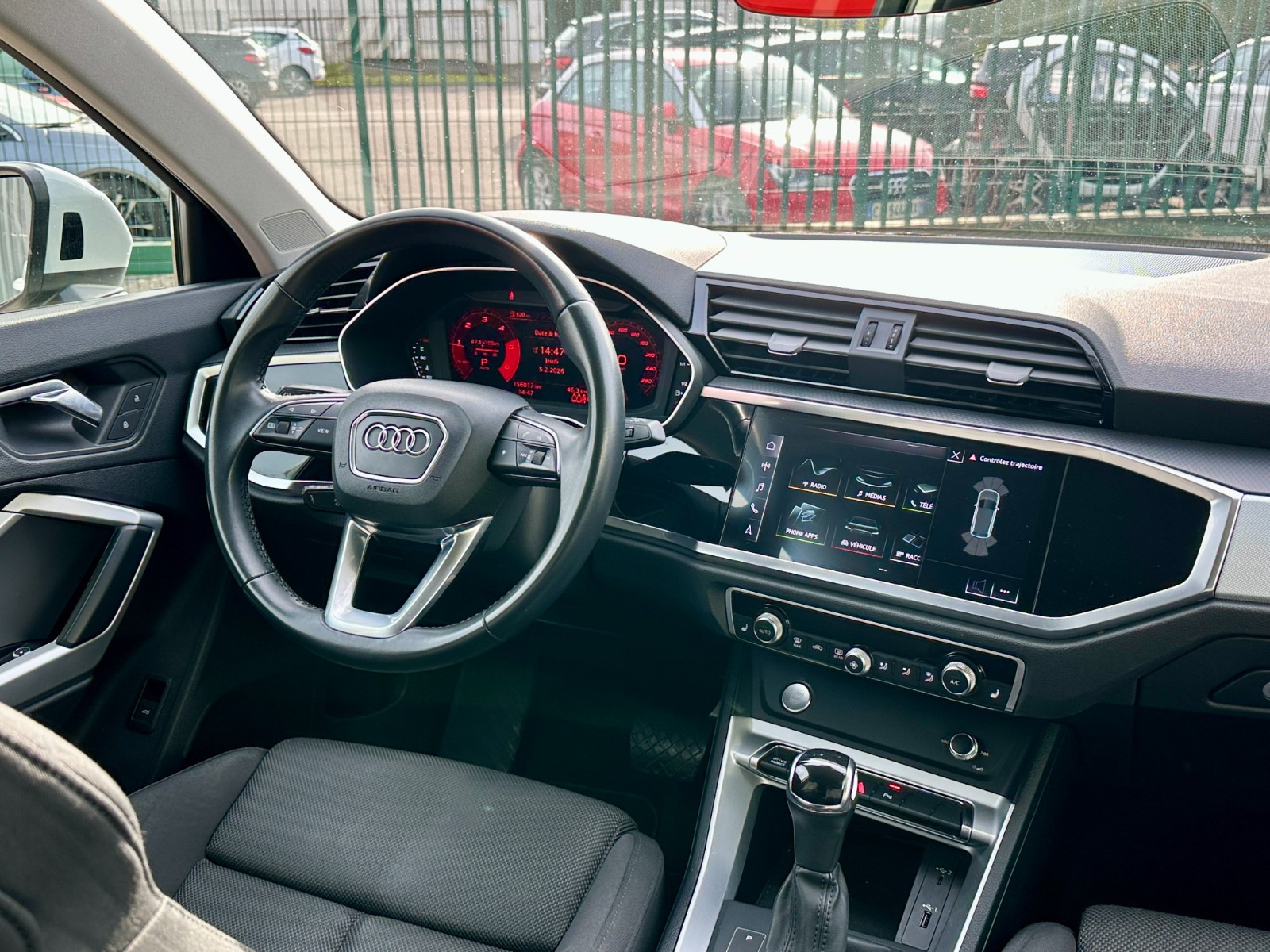 AUDI Q3 Q3 35 TDI 150 ch S tronic 7 S line// AFU AUDI Matrix Led Accoudoir arrière Accoudoir avant Aide au démarrage en pente Airbag conducteur Airbag latéral conducteur et passager Airbag passager Airbags rideaux arrière Airbags rideaux avant Alerte de franchissement involontaire de lignes Allumage automatique des phares Android Auto Apple CarPlay Assistant d'urgence actif au conducteur Assistant dynamique au maintien de voie Assistant freinage d'urgence avec détection piéton Banquette arrière partagée et rabattable Banquette/sièges arrière rabattable Capteur de pluie Carte SD Carte mains-libres Climatisation automatique bizone Contrôle pression pneus (RDC) Démarrage sans clé Détecteur de luminosité Détecteur pluie EBD ESP (programme de stabilité électronique) Ecran tactile Ecrous de roue antivol Essuie glace arrière Essuie-glaces automatiques Feux arrière LED Feux automatiques Feux avant LED Feux de position à LED Feux de route assistés Feux et essuie-glaces automatiques Fixation pour siège enfant Fixations ISOFIX Frein de stationnement électrique Hayon électrique Hayon électrique main-libre Interface Bluetooth Jantes/roues en alliage léger 19 Kit de réparation pneus (Mobile Tyre) Kit téléphone main libre bluetooth Limiteur de vitesse Lumière d'ambiance intérieur à LED Lève-vitres arrière électriques Lève-vitres avant électriques Ordinateur de bord Ouverture de hayon à distance Ouverture sans clef Prise 12V Radar de stationnement arrière Radar de stationnement avant Régulateur de vitesse Rétroviseur conducteur réglable électriquement Rétroviseur intérieur électrochrome Rétroviseur passager réglable électriquement Rétroviseurs extérieurs dégivrants Rétroviseurs extérieurs rabattable électriquement Rétroviseurs extérieurs électriques Select Drive Siège conducteur réglable en hauteur Siège conducteur à dossier réglable Siège conducteur à réglage lombaire électrique Siège passager réglable en hauteur Siège passager à dossier réglable Siège passager à réglage lombaire électrique Sièges arrière réglables Sièges avant chauffants Système Start/Stop Système anti bloquage (ABS) Système audio MP3 Système de détection de somnolence Système de navigation Système de navigation à commande vocale Système d'alerte anti-collision Système information conducteur Sécurité enfants électrique Téléassistance USB jack Virtual cockpit Vitres acoustiques Vitres athermiques Volant en cuir Volant multifonctions Volant réglable manuellement assistant dynamique au changement de file