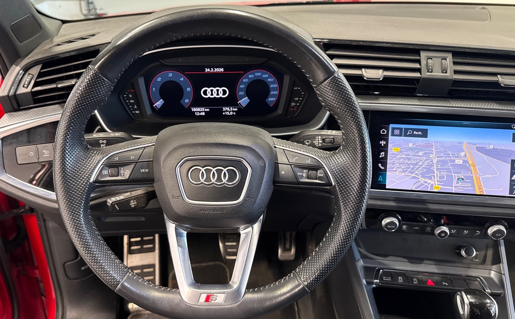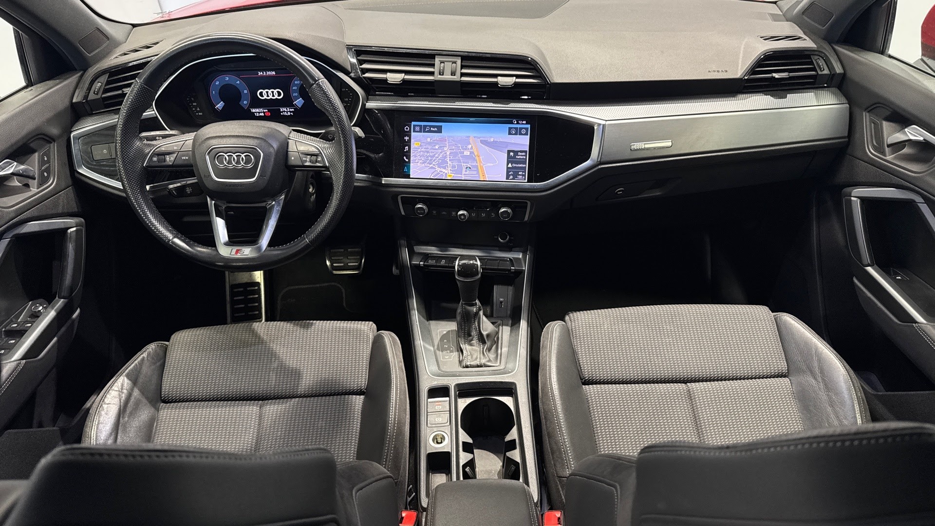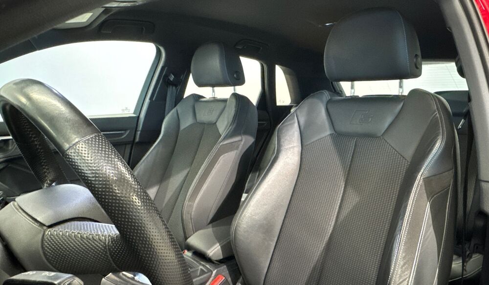 ***SOUS RESERVE D'ERREUR DE REDACTION ET D'OPTIONS*** Equipements supplémentaires : 2 prises USB AR (type-C) et prise 12V dans la console centrale AR, Accoudoir central AV avec vide-poches relevable et inclinaison reglable et coulissant en longueur, Accoudoir central coulissant en longueur, avec inclinaison reglable et vide-poches relevable, Accoudoirs des contre-portes en materiaux synthetiques monopur 550, Affichage de controle de pression des pneus, Appel d'urgence Audi connect, Applications decoratives en aluminium mat Brosse Fonce, Appui lombaire a 4 axes pour les sieges AV, reglage electrique, horizontal et vertical, Assise et dossier de banquette AR, divisee, rabattable 40/20/40, Audi connect, Audi Connect Navigation et Divertissement, Audi Connect securite et assistance en ligne, Audi Drive Select, Audi Hold Assist, Audi Parking System Plus, Audi Pre Sense Basic, Audi Pre Sense front, Audi Smartphone Interface, Audi virtual cockpit, Avertisseur de franchissement de ligne et avertisseur de changement de voie, Banquette AR avec porte-gobelet dans l'accoudoir de la place centrale, Boitiers de retroviseurs exterieurs dans la couleur de la carrosserie, Cables de recharge pour telephone portable, compatibles iPhone et Android, Ciel de pavillon en tissu noir, Cle a frequence radio, Climatisation automatique confort 2 zones, Commande de desactivation de l'airbag passager AV, Detecteur de pluie et de luminosite, Direction assistee electromecanique, asservie a la vitesse, Eclairage interieur, Eclairage interieur a LED, Ecrous de roues antivol, Fixation pour sieges enfants ISOFIX et Top Tether pour les sieges exterieurs AR, Fixation pour sieges enfants ISOFIX pour le siege passager AV, Interface Bluetooth, Interface USB de type A pour le chargement d'appareils externes uniquement, MMI Navigation plus avec MMI touch, MMI Radio Plus avec MMI Touch, Outillage de bord, Pack Aluminium Interieur, Pack S line exterieur, Pack S line interieur, Pack Securite, Pare-brise en verre acoustique avec verre feuillete athermique, Pare-chocs S line dans une peinture integrale (couleur de la carrosserie), Phares a LED avec clignotants dynamiques AR, Porte-gobelet dans l'accoudoir de la place centrale (banquette AR), Rampes de pavillon en Aluminium, anodisees, Rampes de pavillon Noires, Reception radio numerique (DAB), Recuperation d'energie, Regulateur de vitesse, Retroviseur interieur jour/nuit automatique sans encadrement, Retroviseurs exterieurs reglables, degivrants et rabattables electriquement avec position, Securite enfant electrique, Sellerie en Tissu/materiaux synthetiques mono pur 550, Sieges AV reglables manuellement: Hauteur et positionnement en longueur, Inclinaison de dossier,, Sieges AV sport, Suspensions Sport, Systeme de lecture des panneaux de signalisation par camera, Tapis de sol AV/AR, Trousse de secours, triangle de presignalisation et 2 vestes de securite, Volant cuir multifonctions Plus 3 branches, Audi Connect Navigation et Divertissement Plus, Peinture metallisee Rouge Tango, Roue de secours temporaire pour vitesse maximale 80 km/h, Systeme de lecture des panneaux de signalisation par camera.