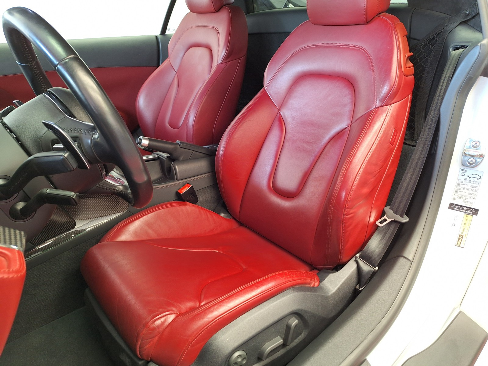 - Sellerie cuir étendue Nappa fin rouge incluant : sièges poignées de portes frein à main et habillage des contre-porte