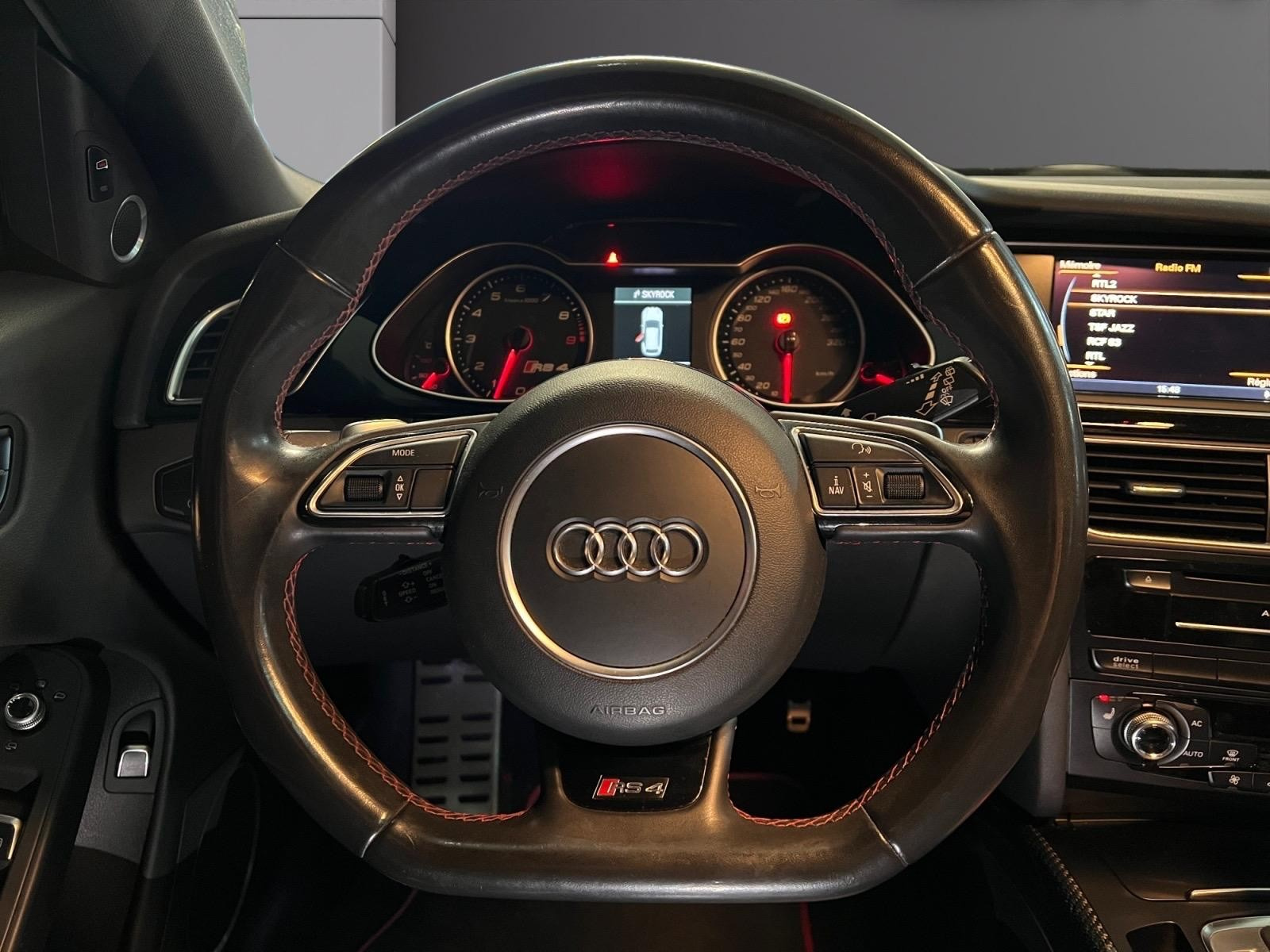 AUDI RS4 AVANT V8 4 2 FSI 450 Quattro S Tronic 7// 4 Roues directrices Accoudoir arrière Accoudoir avant Airbag conducteur Airbag de bassin Airbag latéral conducteur et passager Airbag passager Airbags rideaux avant Allumage automatique des phares Antidémarrage Appuie-tête arrière Becquet arrière Boîte automatique en général Cache bagages Ceintures arrière avec prétensionneurs Ceintures avant avec prétensionneurs Climatisation automatique Contrôle de traction Contrôle pression pneus (RDC) Différentiel à glissement limité automatique Détecteur pluie ESP (programme de stabilité électronique) Ecrous de roue antivol Essuie glace arrière Filet de séparation Fixation pour siège enfant Garnitures intérieures métal Indicateur de température extérieur Installation d'alarme Jantes/roues en alliage léger 19 Kit de réparation pneus (Mobile Tyre) Lave-phares Lecteur CD Lecteur DVD Lecteur MP3 Lève-vitres arrière électriques Lève-vitres avant électriques Oeïllets de fixation Ordinateur de bord Peinture métallisée Peinture nacrée / perlée Phares Xénon Plafonnier à extinction automatique Réglage automatique des phares Répartiteur électronique de freinage Rétroviseur conducteur réglable électriquement Rétroviseur intérieur électrochrome Rétroviseur passager réglable électriquement Siège conducteur réglable éléctriquement Siège conducteur à réglage lombaire électrique Siège passager réglable éléctriquement Siège passager à réglage lombaire électrique Sièges avant Sport Système Check-control Système anti bloquage (ABS) Système de navigation Système de protection contre le coup du lapin Système information conducteur Trappe/sac à skis Verrouillage centralisé télécommandé Vitre arrière chauffante Vitres teintées Volant avec palettes de changement de vitesses Volant réglable manuellement Volant réglable électriquement Volant sport
