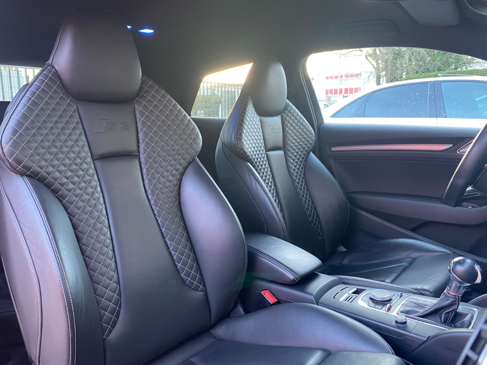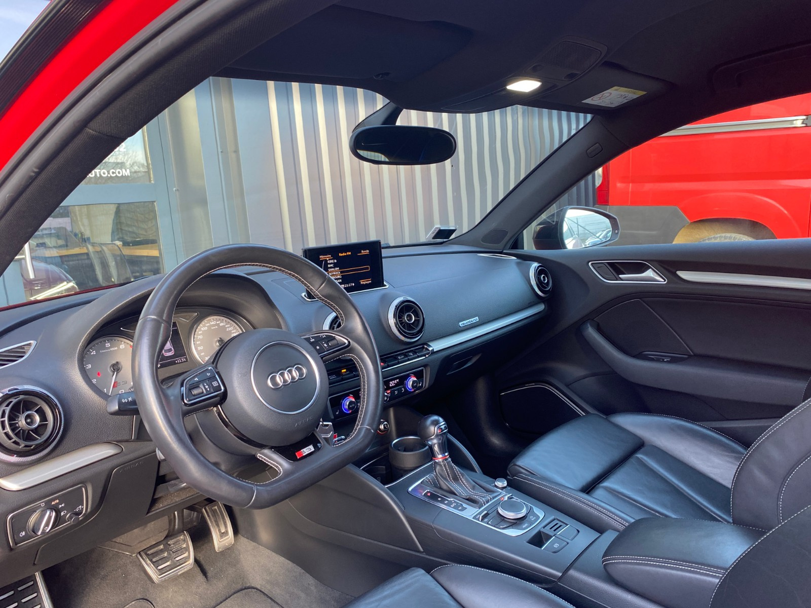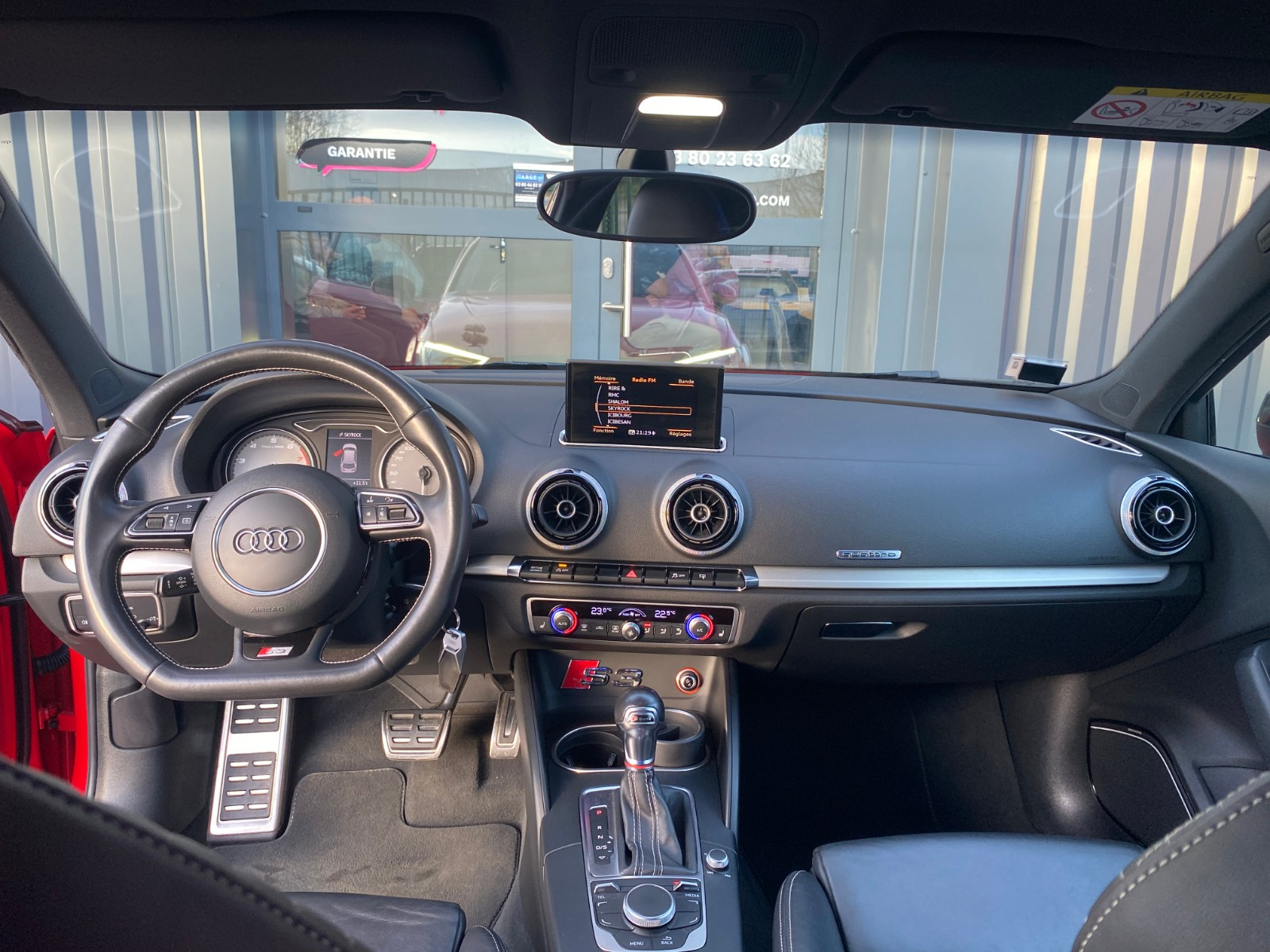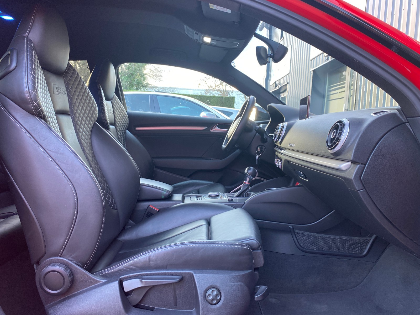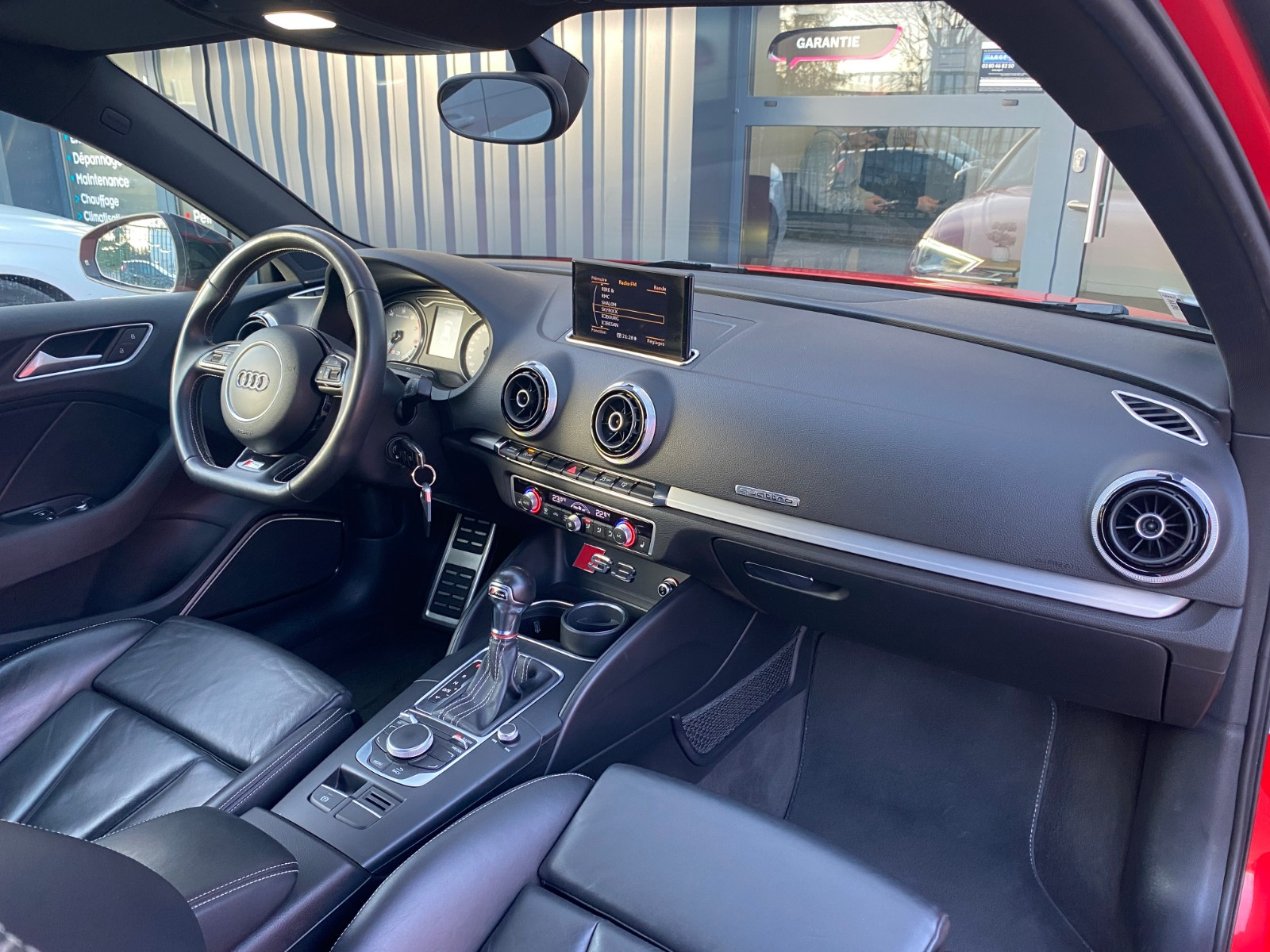 AUDI S3 S3 2 0 TFSI 300 Quattro S-Tronic 6// 4 Roues directrices Accoudoir avant Airbag conducteur Airbag latéral conducteur et passager Airbag passager Airbags rideaux avant Antidémarrage Cache bagages Caméra de recul Climatisation automatique bizone Commande vocale pour téléphone Contrôle de traction Contrôle pression pneus (RDC) Différentiel à glissement limité automatique Détecteur pluie ESP (programme de stabilité électronique) Ecrous de roue antivol Essuie-glaces automatiques Feux automatiques Feux avant LED Frein de stationnement électrique GPS Garnitures intérieures métal Indicateur de température extérieur Installation d'alarme Lave-phares Limiteur de vitesse Lève-vitres avant électriques Oeïllets de fixation Ordinateur de bord Pare chocs couleur véhicule Préparation du système de géolocalisation véhicule Radar de stationnement arrière Radar de stationnement avant Recyclage de l'air automatique Roue de secours standard Régulateur de vitesse Rétroviseur conducteur réglable électriquement Rétroviseur intérieur électrochrome Rétroviseur passager réglable électriquement Rétroviseurs extérieurs dégivrants Rétroviseurs extérieurs rabattable électriquement Siège conducteur basculant Siège conducteur réglable en hauteur Siège passager basculant Siège passager réglable en hauteur Sièges avant chauffants Sièges en cuir Système Check-control Système anti bloquage (ABS) Système audio Bang & Olufsen Système information conducteur Sélection du mode de conduite Verrouillage centralisé télécommandé Vitre arrière chauffante Volant réglable manuellement Volant sport