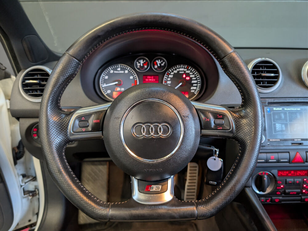 AUDI S3 S3 2 0 TFSI Quattro// 4 roues motrices ABS Accoudoir avant Airbags Allumage automatique des phares Antenne automatique/antenne dans les vitres Antidémarrage Appuie-tête arrière Assistance de freinage Becquet arrière Boîte manuelle 6 vitesses Cache bagages Carnet d'entretien Ceintures arrière avec prétensionneurs Ceintures avant avec prétensionneurs Climatisation automatique bizone Contrôle de traction Différentiel Quattro sport Différentiel à glissement limité automatique Direction assistée Détecteur pluie ESP (programme de stabilité électronique) Essuie glace arrière Factures d'entretien Fixation pour siège enfant GPS Indicateur de température extérieur Installation d'alarme Interface Bluetooth Jantes/roues en alliage léger 19 Lave-phares Levier de vitesses en cuir Lève-vitres avant électriques Phares Xénon Phares antibrouillard Plafonnier à extinction automatique Prise 12V Recyclage de l'air automatique Réglage automatique des phares Répartiteur électronique de freinage Siège conducteur réglable en hauteur Siège conducteur à dossier réglable Siège passager réglable en hauteur Siège passager à dossier réglable Sièges avant chauffants Sièges en cuir / alcantara Suspension sport Système audio BOSE Système information conducteur Toit ouvrant coulissant/relevable Verrouillage centralisé télécommandé Vitres teintées Volant sport Échappement sport