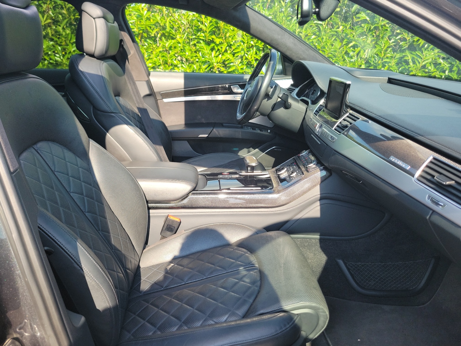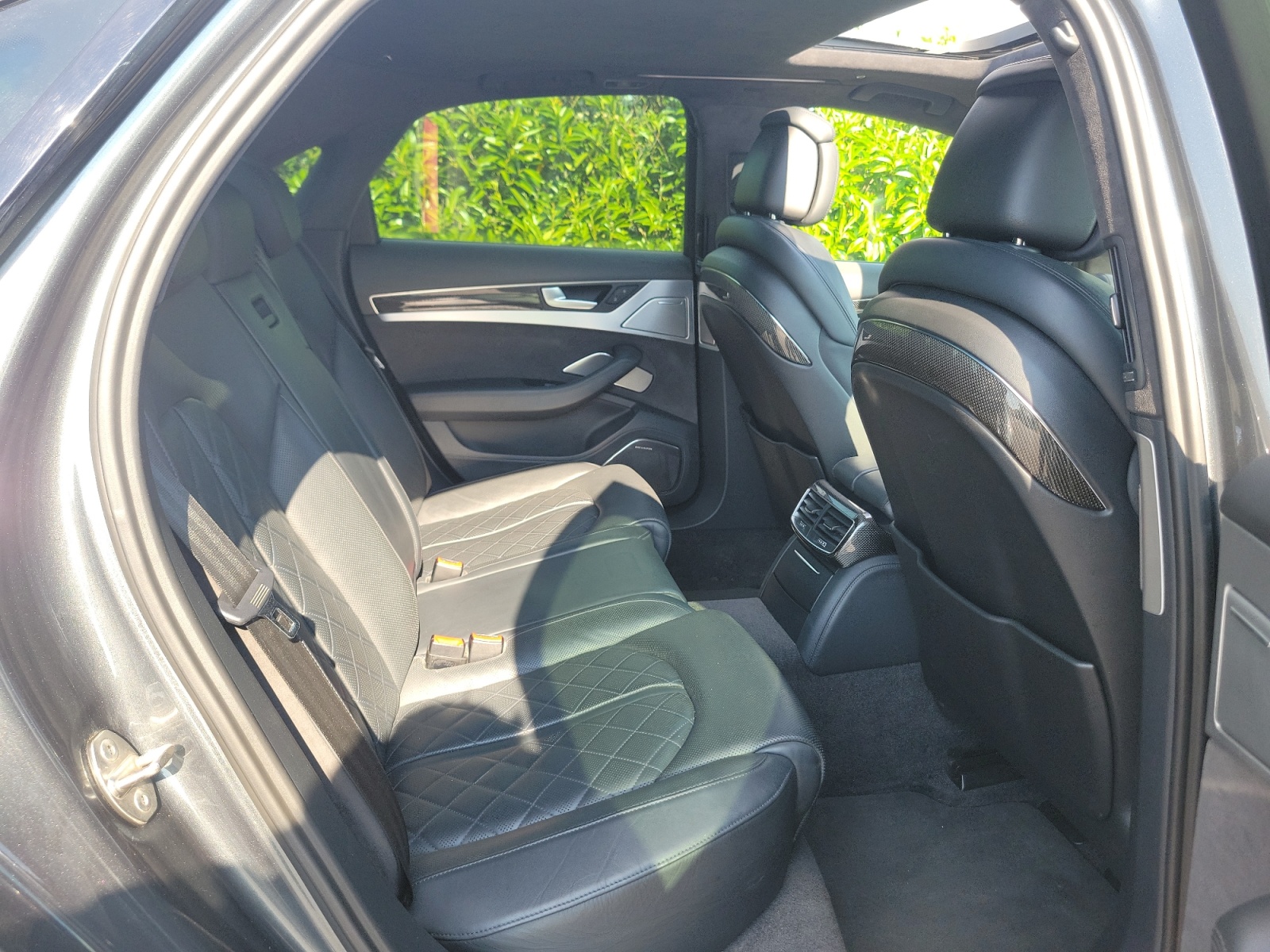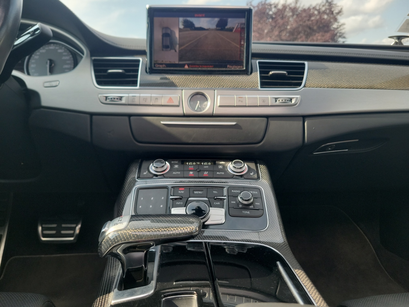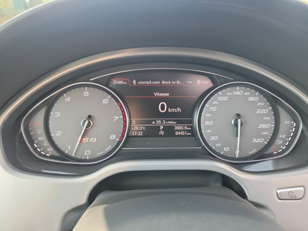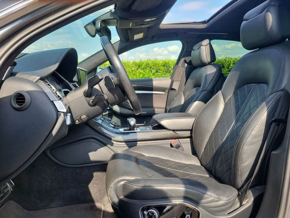 ABS,Accoudoir central AR avec trappe à skis,Accoudoir central AV avec rangement,Affichage tête haute,Aide au demarrage en cote,Aide au freinage d'urgence,Airbag conducteur,Airbag passager,Airbags latéraux AV et AR,Airbags rideaux AV et AR,Alarme,Alarme périmétrique,Alarme volumétrique,Antidémarrage électronique,Antipatinage,Appui-tête conducteur réglable hauteur,Appui-tête passager réglable en hauteur,Arrêt et redémarrage auto. du moteur,Attelage rotule démontable,Bacs de portes arrière,Bacs de portes avant,Bang & Olufsen Advanced Sound System,Banquette arrière 3 places fixe,Banquette arrière monobloc,Blocage électronique du différentiel,Boite à gants éclairée et réfrigérable,Borne Wi-Fi,Boucliers AV et AR couleur caisse,Buses de lave-glace chauffantes,Calandre chromée,Caméra de recul,Cameras 360° Top View,Capteur de luminosité,Capteur de pluie,Carplay SANS FIL,Catadioptres actifs,Ceinture de vitrage chromée,Ceintures avant ajustables en hauteur,Chargeur CD/DVD,Climatisation 4 zones Climatronic,Clim automatique bi-zones,Coffre assisté électriquement,Colonne de direction électr. à mémoire,Commandes vocales,Compte tours,Contrôle élect. de la pression des pneus,Cuir étendu 2 / inclus 7HB+dessous tab/contreportes,Démarrage sans clé,Dispositif freinage automatique,Disque dur multimédia,EBD,Echappement à double sortie,Eclairage au sol,Eclairage d'ambiance,Eclairage statique d'intersection,Ecran multifonction couleur,Ecran tactile,ESP,Feux arrière à LED,Feux de freinage d'urgence,Feux de jour à LED,Filets de coffre,Filtre à Pollen,Fixations Isofix aux places arrières,Follow me home,Fonction MP3,Freinage automatique d'urgence,GPS Cartographique,Inserts de porte carbone,Inserts de tableau de bord carbone,Jantes alu,Jantes Alu Coulées 21" Audi Sport 5 Branches Triples ,Kit Fumeur,Kit mains-libres Bluetooth,Lampe de coffre,Lampes de lecture à l'arrière,Lampes de lecture à l'avant,Lave-phares,Lecteur carte SD,Lecteur DVD,Lunette AR dégivrante,Lunette arrière,Miroir de courtoisie conducteur éclairé,Miroir de courtoisie passager éclairé,Navigateur Internet,Options et accessoires:,Ordinateur de bord,Origine France et suivi d'entretien,Ouverture des vitres séquentielle,Ouverture du coffre mains-libres,Pack Alcantara avec ciel de pavillon noir,Palettes changement vitesses au volant,Pare-Brise et vitres latérales feuilletés accoustiques,Pare-brise thermique,Peinture métal Gris Daytona,Phares avant LED,Phares AV Audi Matrix Led,Phares de route adaptatifs,Phares directionnels,Poches d'aumonières,Poignées ton carrosserie,Pommeau de levier de vitesse carbone,Porte-gobelets arrière,Porte-gobelets avant,Préparation Isofix,Prise 12V,Prise iPod,Prise USB,Radar de stationnement AR,Radar de stationnement AV,Radio,Régulateur de vitesse adaptatif,Répétiteurs de clignotant dans rétro ext,Retroviseur intérieur électrochrome,Rétroviseurs dégivrants,Rétroviseurs électriques,Rétroviseurs extérieurs à mémoire,Rétroviseurs extérieurs électrochromes,Retroviseurs rabattables électriquement,Sac à ski,Siège conducteur à mémoire,Siège conducteur avec réglable lombaire,Siège conducteur chauffant,Siège conducteur électrique,Siège conducteur réglable en hauteur,Siège passager à mémoire,Siège passager à réglages électriques,Siège passager avec réglage lombaire,Siège passager chauffant,Siège passager réglable en hauteur,Sièges avant sport,Sortie d'échappement chromée,Stations de webradio,Stores de lunette arrière,Stores de vitres latérales,Système d'accès sans clé,Système d'échappement sport à clapets,Système d'éclairage intelligent,Système de localisation par satellite,Système de prévention des collisions,Syst. intelligent gestion des cylindres,Télécommande de garage,Téléphone de voiture,Témoin de bouclage des ceintures AV,Température extérieure,TMC,Toit ouvrant électrique,Toit ouvrant rang 1 coulissant,Toit ouvrant rang 1 entrebaillant,Très belle configuration avec près de 20 000€ d'options!,Troisième ceinture de sécurité,Velum rang 1,Verrouillage auto. des portes en roulant,Verrouillage centralisé à distance,Verrouillage centralisé des portes,Vitrage latéral feuilleté,Vitres arrière électriques,Vitres avant électriques,Vitres teintées,Volant Chauffant Sport Multifonctions+Palettes,Volant cuir,Volant multifonction,Volant réglable en profondeur et hauteur,Volant sport,Volume automatique de la radio