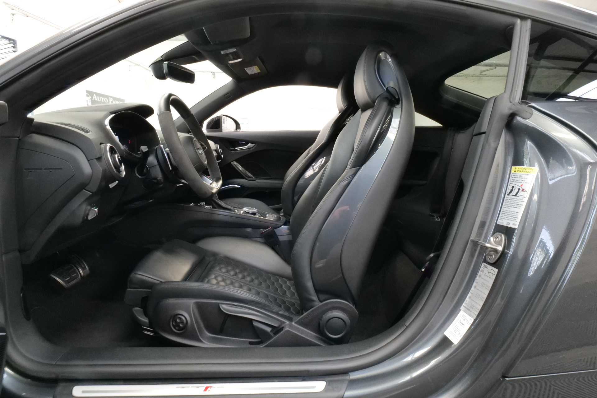 - EXTENSION DE GARANTIE POSSIBLE DE 3 A 24 MOIS Equipements supplémentaires : Anneaux Audi et monogrammes en Noir Brillant, Applications de l'habitacle couleur Gris Ardoise, Applications decoratives en Carbone, Audi Hold Assist, Audi Smartphone Interface, Boitiers de retroviseurs exterieurs laques Noir brillant, Chauffage des sieges AV, Etriers de freins AV et AR peints en rouge, Pack brillance RS noir, Pack Cuir etendu, Pack Fumeur, Peinture metallisee Gris Daytona, Phares Audi Matrix LED avec clignotants dynamiques (AV et AR), Sellerie en cuir Nappa fin embosse RS, Sorties d'echappement Sport RS pour une sonorite encore plus sportive, Vitres surteintees (Privacy Glass): Lunette AR et vitres laterales AR surteintees.
