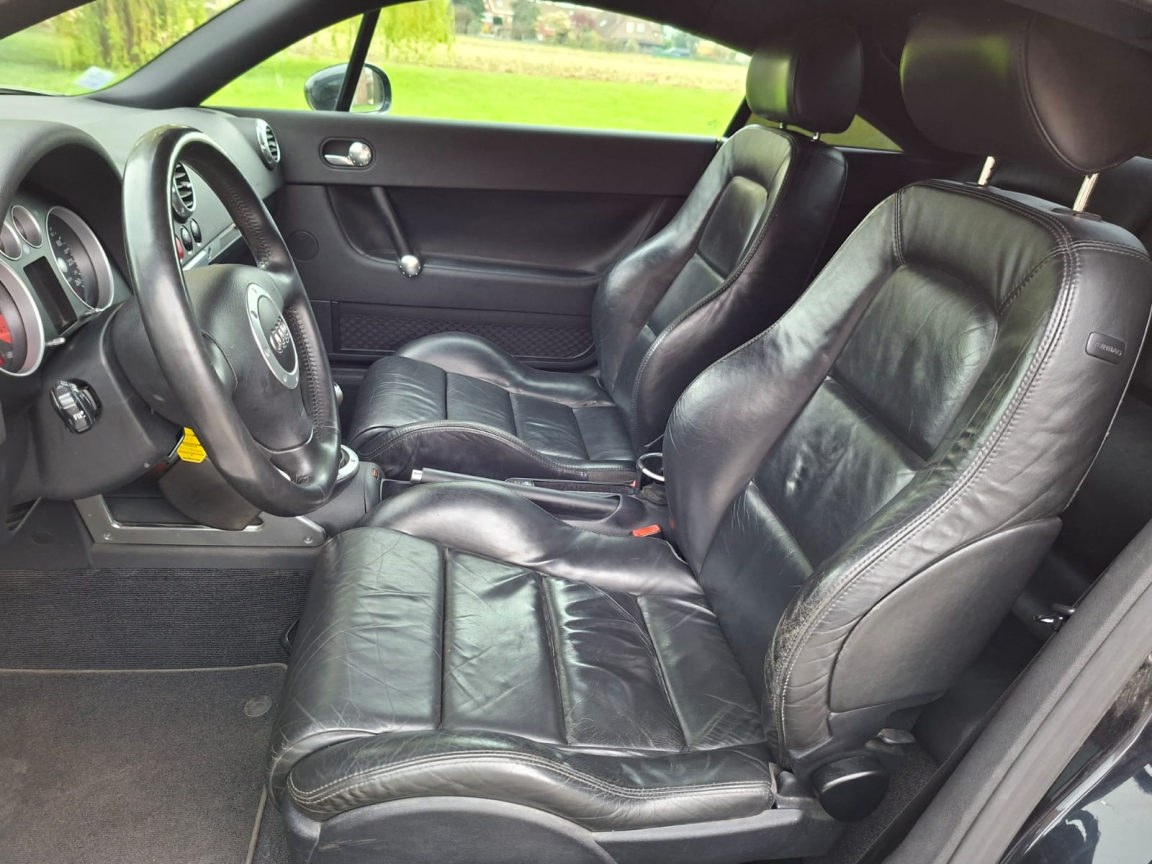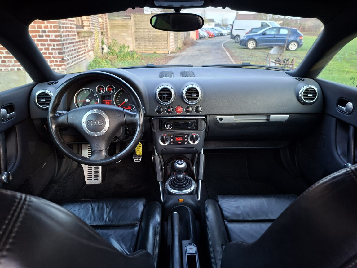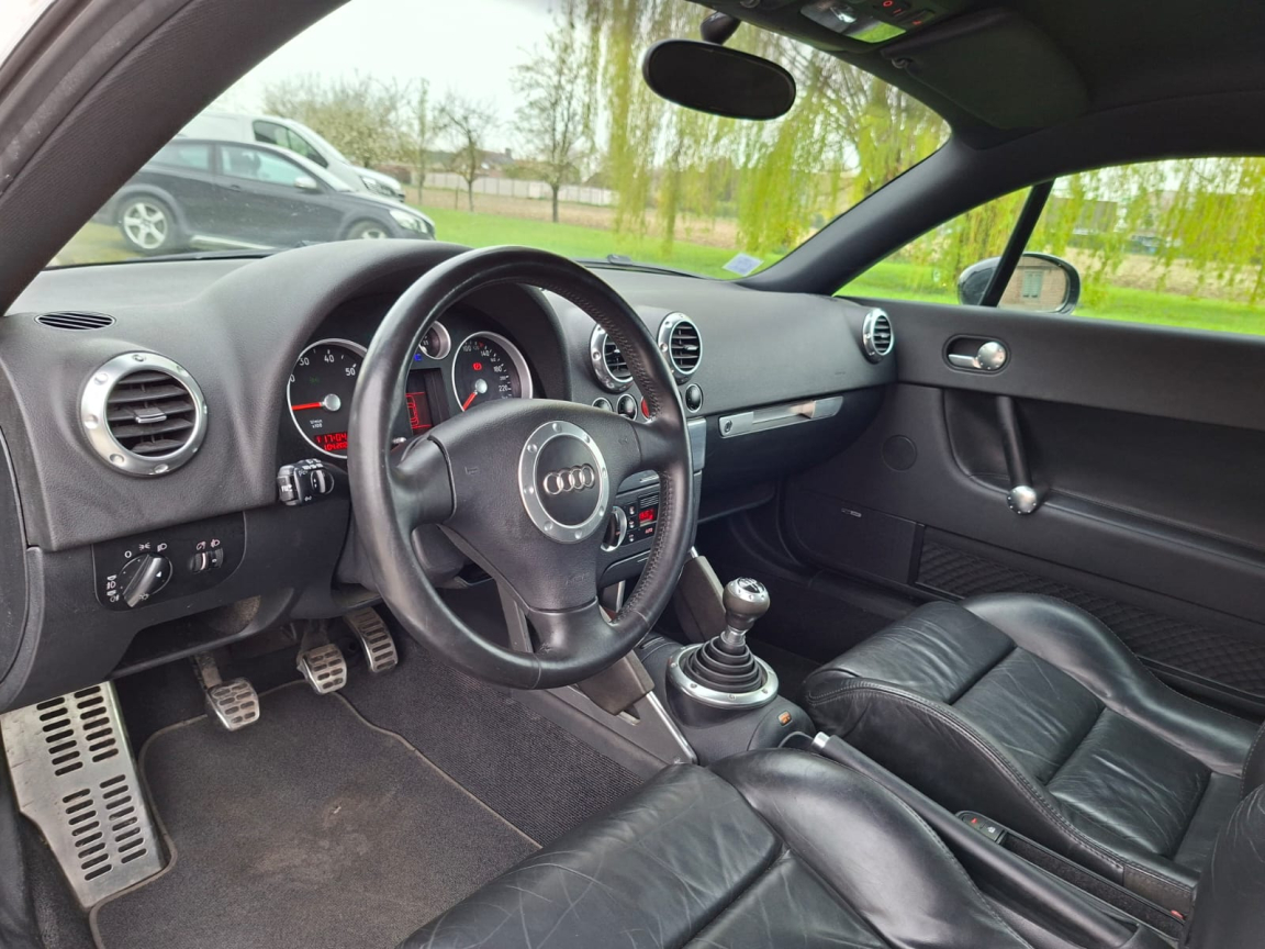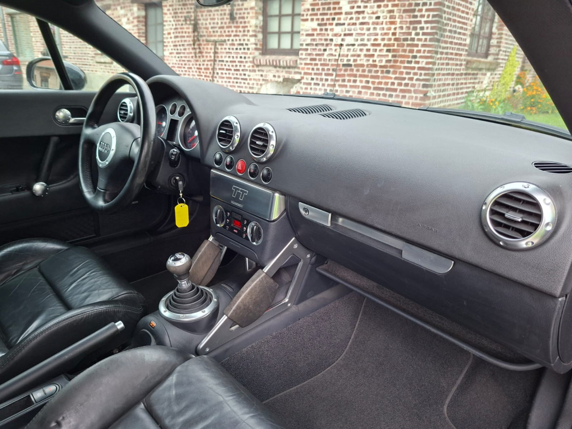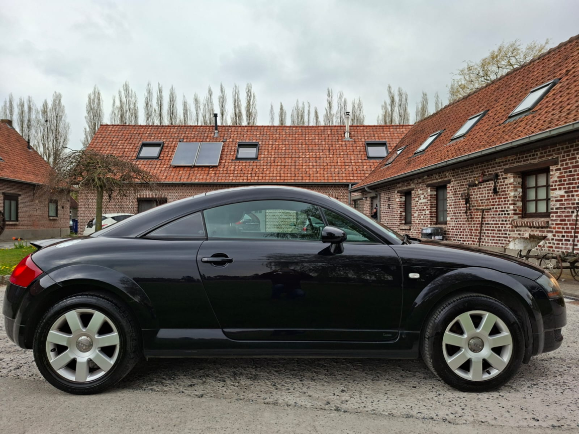 AUDI TT COUPE (1.8T 150ch SLINE/CUIR/CLIM/REGUL/JA/2MAIN/GAR6M) NOIR Cuir noir.Disponible tout de suite,, Garantie 6 mois,, Kilométrage certifié officiellement par car-pass,, Entretien avant remise en main,, Plus de 200 véhicules et essayables sur notre site internet via notre vitrine, Pneus AR neufs,, Plaquettes AV neuves,, Livraison prix sur demande,, Régulateur de vitesse,, ABS et EBV,, Airbag conducteur et passager,, Airbags latéraux AV,, Antenne intégrée dans la lunette AR,, ASR,, Blocage électronique de différentiel EDS,, Buses de lave-glace chauffantes,, Carrosserie entièrement galvanisée contre la corrosion,, Ceinture de sécurité AV à enrouleur,, Ceintures AV à prétensionneurs pyrotechnique et limiteurs d'effort,, Ceintures de sécurité 3 points,, Ceintures de sécurité AV réglables en hauteur,, Climatisation automatique,, Colonne de direction de sécurité,, Commande d ouverture de trappe à carburant de l intérieur,, Compte-tours et montre digitale,, Console centrale,, Direction assistée,, Dossiers banquette AR rabattables,, Feu de recul,, Feux de brouillard AR,, Indicateur de température extérieure,, Inserts intérieurs aluminium,, Jantes alu coulé style 7 branches 7J x 16 et pneus 205/55 R16,, Miroir de courtoisie éclairant côté conducteur,, Miroir de courtoisie éclairant côté passager,, Ordinateur de bord et système Auto-Check,, Pare-brise en verre feuilleté,, Pédalier et seuils de portes en alu,, Phares antibrouillard ellipsoïdaux intégrés aux phares principaux,, Phares principaux ellipsoïdaux avec réglage électrique du site,, Plafonnier et spots de lecture,, Pommeau de levier de vitesse en cuir cerclé d'aluminium,, Pré-équipement radio 6 HP,, Programme de stabilité électronique ESP,, Protection anti-démarrage Clétronic actionné par clé de contact codée et homologuée SRA 7 clés,, Repose-pied conducteur,, Rétroviseur(s) extérieur(s) électrique(s),, Rétroviseurs extérieurs asphérique à gauche et convexe à droite,, Rétroviseurs extérieurs couleur carrosserie,, Roue de secours à encombrement réduit,, Sièges AV Sport,, Sortie d'échappement simple,, Soufflet de levier de vitesses en caoutchouc, insert de soufflet en aluminium,, Télécommande de verrouillage centralisé intégrée à la clef de conctact,, Triangle de pré-signalisation et trousse à pharmacie,, Vitres athermiques,, Vitres électriques,, Vitres teintées,, Volant 3 branches,, Volant Sport gainé cuir,, 5 vitesses, 4 places, puissance fiscal : 9, puissance din : 150, émission de CO2 : 194 g/km.