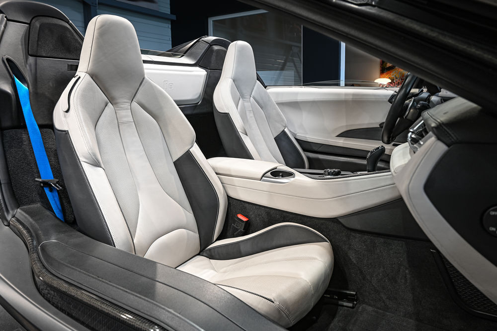 Intérieur : Cuir étendu perforé "Ivory White/Black" avec surpiqûres contrastées