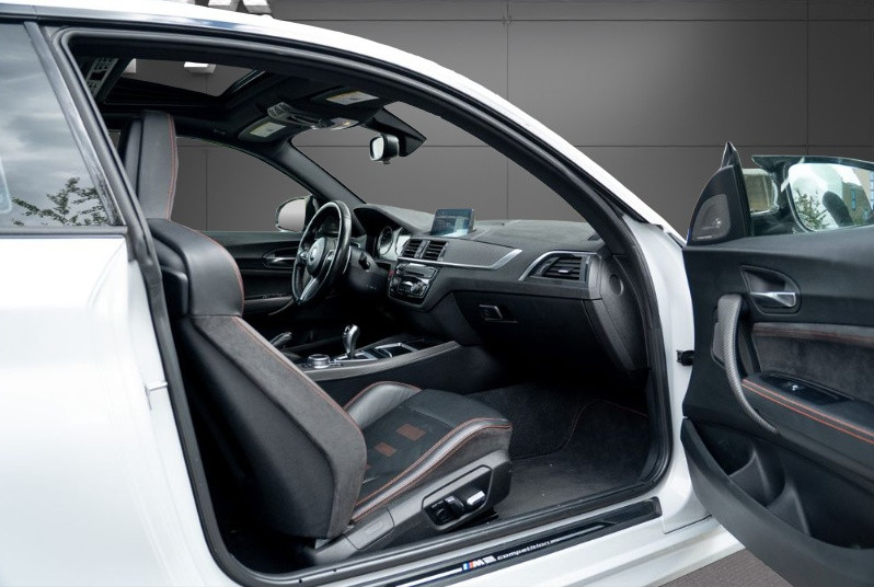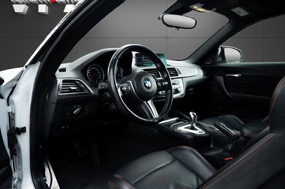 Abs, Accoudoir central, Aide au démarrage en pente, Aide au freinage d'urgence, Airbags frontaux, Airbags latéraux, Airbags rideaux, Allumage automatique des feux, Anti-démarrage, Anti-patinage, Auto-radio commandé au volant, Bluetooth, Caméra de recul, Châssis sport, Climatisation automatique, Contrôle pression des pneus, Détecteur de pluie, Direction assistée, ESP, Fermeture centralisée, Fixation ISOFIX, GPS, Intérieur cuir, Intérieur tissu, Jante alliage, Jantes 19 pouces, Kilométrage garantie, Limiteur de vitesse, Ordinateur de bord, Phares antibrouillard, Radar arrière de détection d'obstacles, Radar avant de détection d'obstacles, Radio CD, Régulateur de vitesse, Reprise possible, Sièges réglables en hauteur, Stop & start, Toit ouvrant, Toit ouvrant électrique, Toit ouvrant panoramique, Toit panoramique, Verrouillage automatiques des portes en roulant, Volant cuir, Volant multifonctions, Volant réglable, Volant réglable, Volant réglable en hauteur, Volant sport, contactez-nous .......................... INFORMATIONS........................ Icône de la gamme M, la BMW M2 Competition séduit par son caractère explosif et sa précision redoutable. Son six cylindres en ligne de 411 ch, sa boîte DKG et son châssis affûté signent une expérience de conduite pure, à la fois brutale et maîtrisée.