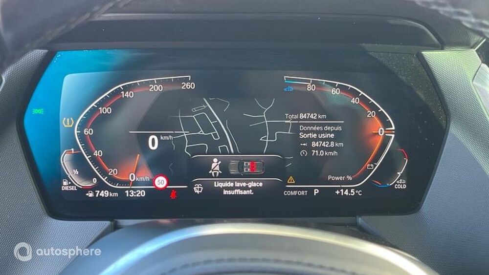 Equipements: ABS, Accoudoir central AV avec rangement, AFIL, Aide au démarrage en côte, Airbag conducteur, Airbag passager déconnectable, Airbags latéraux avant, Airbags rideaux, Airbags rideaux AR, Antidémarrage électronique, Antipatinage, Appel d'Urgence Localisé, Arrêt et redémarrage auto. du moteur, Bacs de portes arrière, Bacs de portes avant, Banquette AR rabattable, Banquette arrière 3 places, BAS, Boite à gants fermée, Borne Wi-Fi, Calandre chromée, Caméra de recul, Capteur de luminosité, Capteur de pluie, Clim automatique, Commandes du système audio au volant, Commandes vocales, Compte tours, Contrôle de couple en courbe, Contrôle de freinage en courbe, Contrôle de Traction, Contrôle élect. de la pression des pneus, Démarrage sans clé, Disque dur multimédia, EBD, Echappement à double sortie, Eclairage au sol, Eclairage d'ambiance, Ecran multifonction couleur, Ecran tactile, ESP, Feux arrière à LED, Feux de jour à LED, Filtre à particules, Filtre à Pollen, Fixations Isofix aux places arrières, Follow me home, Fonction MP3, GPS Cartographique, Indicateur de limitation de vitesse, Interface Media, Jantes Alu, Kit mains-libres Bluetooth, Miroir de courtoisie conducteur éclairé, Miroir de courtoisie passager éclairé, Ordinateur de bord, Phares antibrouillard LED, Phares avant LED, Poches d'aumonières, Porte-gobelets avant, Prise 12V, Prise USB, Radio, Radio numérique DAB, Régulateur de vitesse, Rétroviseurs dégivrants, Rétroviseurs électriques, Rétroviseurs rabattables électriquement, Services connectés, Siège conducteur réglable en hauteur, Sièges avant sport, Sortie d'échappement chromée, Suspensions Sport, Système d'assistance au stationnement, Système de mesure de place disponible, Température extérieure, TMC, Verrouillage auto. des portes en roulant, Verrouillage centralisé à distance, Vitres arrière électriques, Vitres avant électriques, Volant cuir, Volant multifonction, Volant réglable en profondeur et hauteur, Volant sport, Accès Confort avec prépa BMW Digital Key, BMW Individual Storm Bay métallisé, BMW Individual Storm Bay métallisé, BMW Individual Storm Bay métallisé, Pack Evasion, Roue de secours galette