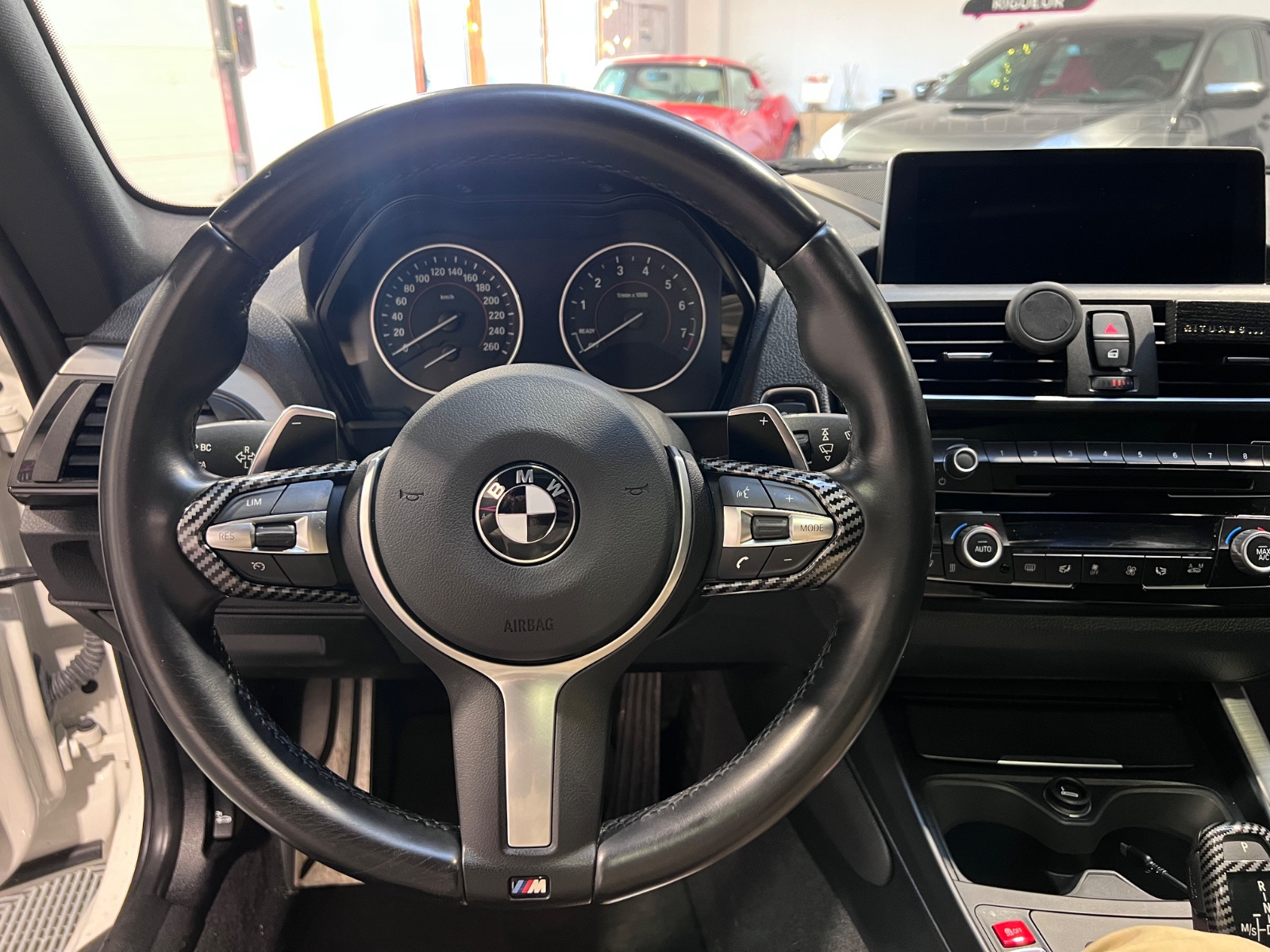 // 2 roues motrices Accoudoir avant Aide parking avec caméra de recul Airbag conducteur Airbag latéral conducteur et passager Airbag passager Airbags rideaux arrière Airbags rideaux avant Allumage automatique des phares Antenne automatique/antenne dans les vitres Antidémarrage Assistance de freinage Banquette arrière partagée et rabattable Becquet arrière Boîte automatique 8 vitesses Capteur de pluie Climatisation automatique Contrôle de traction Contrôle pression pneus (RDC) Démarrage sans clé Détecteur pluie ESP (programme de stabilité électronique) Ecrous de roue antivol Entrée sans clé Essuie-glaces automatiques Factures d'entretien Feux indicateurs de changement de direction Fixation pour siège enfant GPS Interface Bluetooth Intérieur cuir Jantes/roues en alliage léger 18 Lève-vitres avant électriques Non fumeur Oeïllets de fixation Ordinateur de bord Ouverture de hayon à distance Pack M Pack performance Peinture laquée / opaque Phares antibrouillard Régulateur automatique de distance Répartiteur électronique de freinage Rétroviseur extérieur électrochrome Rétroviseurs extérieurs dégivrants Rétroviseurs extérieurs rabattable électriquement Rétroviseurs extérieurs électriques Select Drive Siège conducteur réglable en hauteur Siège passager réglable en hauteur Sièges avant Sport Sièges avant chauffants Sièges en alcantara Sièges électriques à mémoire Soundsystem Système Check-control Système Start/Stop Système anti bloquage (ABS) Système audio Harman Kardon Système de navigation Système de récupération d'énergie USB jack Verrouillage centralisé Verrouillage indépendant du coffre/hayon Vitres teintées Volant en cuir Volant réglable manuellement