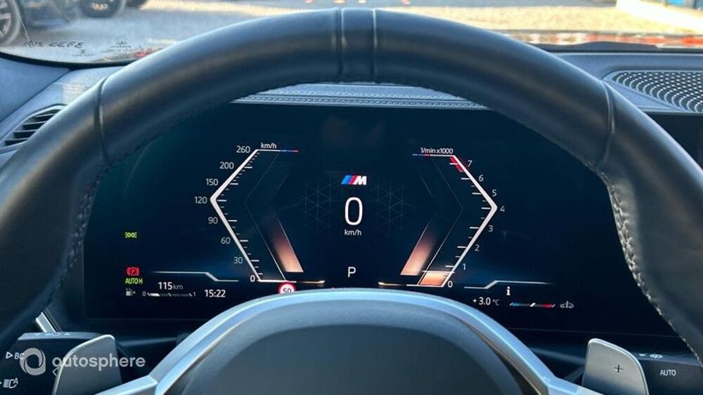 Equipements: 6 Haut parleurs, ABS, Accoudoir arrière, Accoudoir central AV avec rangement, AFIL, Aide au démarrage en côte, Aide au freinage d'urgence, Airbag conducteur, Airbag passager, Airbag passager déconnectable, Airbags latéraux avant, Airbags rideaux, Airbags rideaux AR, Alarme, Alarme périmétrique, Alpinweiss, Antidémarrage électronique, Antipatinage, Appel d'Urgence Localisé, Appui-tête conducteur réglable hauteur, Appui-tête passager réglable en hauteur, Arrêt et redémarrage auto. du moteur, Assistance de maintien de trajectoire, Bacs de portes avant, Banquette 2 places, Banquette 40/20/40, Banquette AR rabattable, Boite à gants fermée, Boucliers AV et AR couleur caisse, Calandre chromée, Caméra de recul, Capote électrique, Capote souple, Capteur de luminosité, Capteur de pluie, Clim automatique tri-zones, Commande Climatisation AR, Commande du comportement dynamique, Commande Mode ECO, Commandes du système audio au volant, Commandes vocales, Compte tours, Contrôle de freinage en courbe, Contrôle élect. de la pression des pneus, Cuir Schwarz+spq bleues, Démarrage sans clé, EBD, Echappement à double sortie, Eclairage d'ambiance, Ecran multifonction couleur, Ecran tactile, ESP, Feux arrière à LED, Feux de jour à LED, Filet anti-remous, Filets de coffre, Filtre à Pollen, Fixations Isofix aux places arrières, Follow me home, Fonction MP3, GPS Cartographique, Indicateur de limitation de vitesse, Inserts de tableau de bord métal, Interface Media, Jantes Alu, Kit mains-libres Bluetooth, Lampe de coffre, Lampes de lecture à l'avant, Limiteur de vitesse, Miroir de courtoisie conducteur éclairé, Miroir de courtoisie passager éclairé, Ordinateur de bord, Ouverture des vitres séquentielle, Palettes changement vitesses au volant, Pare-brise acoustique, Phares avant LED, Poches d'aumonières, Poignées ton carrosserie, Porte-gobelets arrière, Porte-gobelets avant, Prise 12V, Prise auxiliaire de connexion audio, Prise USB, Radar de stationnement AR, Radar de stationnement AV, Radio, Radio numérique DAB, Régulateur de vitesse, Répétiteurs de clignotant dans rétro ext, Rétroviseur intérieur électrochrome, Rétroviseurs dégivrants, Rétroviseurs électriques, Rétroviseurs ext. indexés à la marche AR, Rétroviseurs extérieurs à mémoire, Rétroviseurs extérieurs électrochromes, Rétroviseurs rabattables électriquement, Services connectés, Siège conducteur à mémoire, Siège conducteur chauffant, Siège conducteur électrique, Siège conducteur réglable en hauteur, Siège passager à réglages électriques, Siège passager avec réglage lombaire, Siège passager chauffant, Siège passager réglable en hauteur, Sièges avant sport, Sortie d'échappement chromée, Suspensions Sport, Système d'assistance au stationnement, Système de détection de somnolence, Système de mesure de place disponible, Système de prévention des collisions, Température extérieure, TMC, Verrouillage centralisé à distance, Verrouillage centralisé des portes, Vitres avant électriques, Volant cuir, Volant multifonction, Volant réglable en profondeur et hauteur, Volant sport, Chauffage de nuque, Direction DirectDrive démultipl variable, Garantie Constructeur 2 ans+1 an, Inserts M Alu Rhombicle anthracite, Pack Confort Cabriolet, Pack Innovation (Drive Assist), Pack Innovation (Drive Assist Pro), Pack M Sport Pro, Régulateur de vitesse actif ACC+, Saphirschwarz métallisé, Suspension DirectDrive, Système Hi-Fi, Volant chauffant