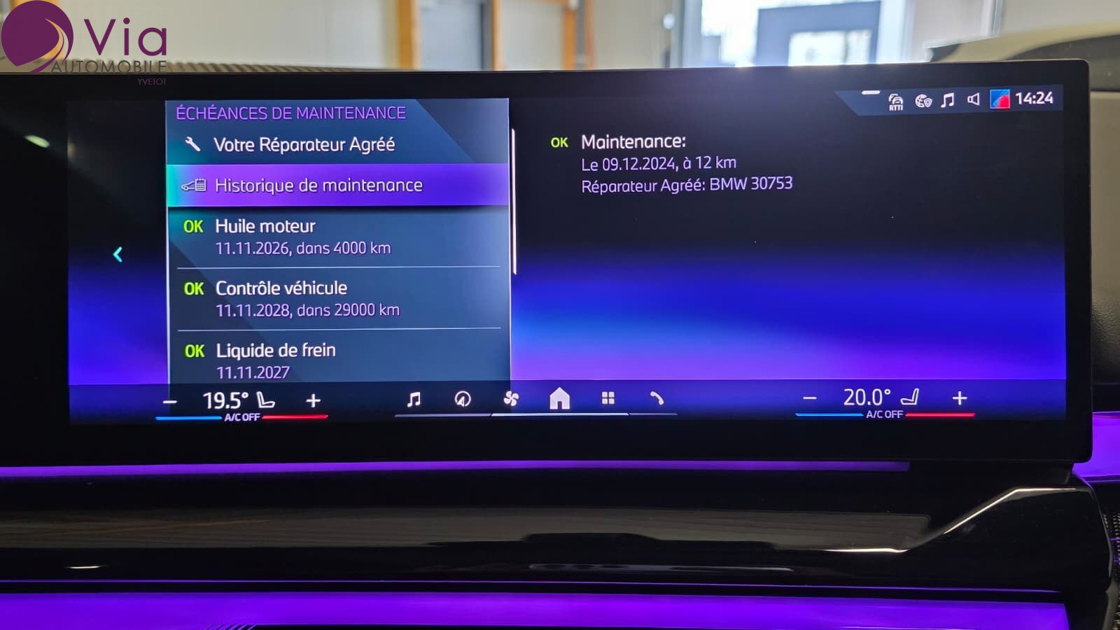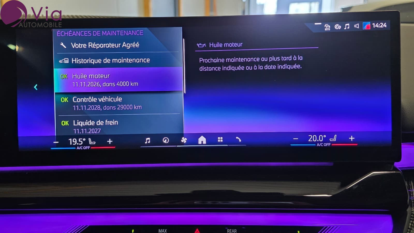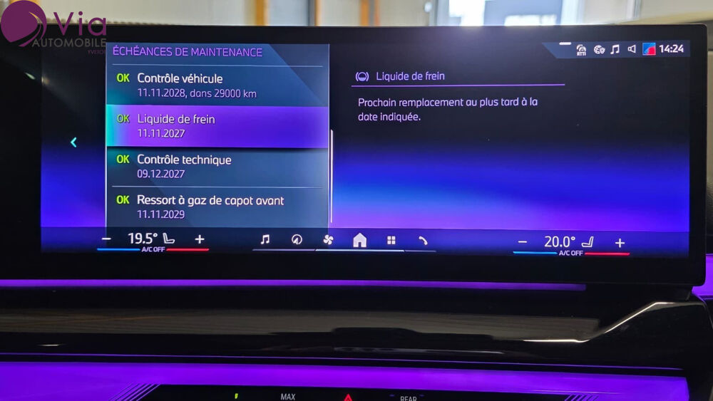 *** SOUS RESERVE D'ERREUR DE REDACTION ET D'OPTIONS *** Equipements supplémentaires : 3 appuis-tete AR, 2 reglables en hauteur, 3 ceintures AR 3 points, 5 sieges, ABS (systeme de freinage antiblocage) y compris assistant de freinage d'urgence en virage, Accoudoir central AV/AR (avec 2 porte-gobelets), Active Guard, Aides a la conduite Driving Assistant Plus - Fonction a la demande, Airbag central (siege conducteur), Airbag frontal (volant/conducteur et passager AV(desactivation possible)), Airbag frontal passager AV desactivable, Airbags de tete, Airbags lateraux conducteur et passager AV, Alarme antivol, Anneau bleu autour de l'embleme BMW sur le capot, le hayon, le volant et les moyeux de roue, Appel d'Urgence Intelligent (duree de vie de la voiture), Appui lombaire ajustable, Assistance au freinage, Assistant d'attention avec recommandation de pause, Avertisseur sonore pour pietons, Banquette AR rabattable 40/20/40, BMW Digital Key, BMW eDrive, BMW eDrive (Capacite de la batterie haute tension Lithium-ion: 22,1 kWh brute (19,4 kWh nette)/403V), BMW eDrive (Systeme de recuperation de l'energie au freinage Brake Energy Regeneration jusquau, BMW IconicSounds Electric, BMW ID, BMW iDrive, BMW Interaction Bar, retroeclairee, BMW Live Cockpit Navigation Plus avec BMW Curved Display, Boite de vitesses automatique 8 rapports, Bouton de demarrage du moteur Start/Stop sans manipulation de la cle, Buse de lave-glace pour camera de recul, Buses de lave-glace chauffantes, Cable de recharge Professionnel Mode 3 (T2-T2) 22 kW pour la recharge publique - 5 metres, Capteur de pluie et allumage automatique des projecteurs, Chargeur rapide AC Plus 11 kW, Chauffage de lunette AR, Ciel de pavillon M Anthracite, Climatisation automatique bi-zone a fonctionnalites etendues, Controle de la stabilite de la remorque, Controle de la traction (TCS), Controle dynamique de stabilite DSC, Dalle de recharge par induction, Designation du modele, Direction assistee, Disques de freins AV/AR, Drive Assist, Eclairage d'ambiance, Eclairage d'ambiance avec BMW Interaction Bar, Ecrous de roues antivol, Elements exterieurs M Sport, Elements interieurs M Sport, Encadrement des vitres laterales en Aluminium satine, Entourage de calandre en Aluminium satine, ESP, Feux AR LED, Feux de jour et clignotants AV/AR a LED, Feux de route anti-eblouissement, Feux de sortie de porte, Feux de stop dynamique a technologie LED, Fixation ISOFIX pour sieges enfant a l'AR, Inserts decoratifs Dark Silver avec Aluminium Rhombicle, Kit de mobilite, Kit de mobilite Plus, Leve-vitres AV, Limiteur et regulateur de vitesse avec fonction freinage, Mesure individuelle de pression des pneumatiques, Moteur TwinPower Turbo essence 6 cylindres, Norme GSR 2 (General Safety Regulation), Pack Connected Pro (dont Apple CarPlay et Android Auto), Palettes de changement de rapports, Pare-soleils pour conducteur et passager AV avec miroir de courtoisie eclaire, Park Assist avec camera de recul, Parking Assistant, PC iBrake (PostCrash Collision Warning avec fonction de freinage), Poignees de portes affleurantes, Portes AR avec securite enfants, Prises 12V : 1 x accoudoir AV, 1 x vide-poches AV, 2 x console centrale AR avec un adaptateur USB, Prises USB-C : 2 x 15 W (recharge + transmission de donnees) dans l'accoudoir AV, Projecteurs Advanced Full LED, Recyclage de l'air et microfiltre a charbon actif, Retroviseur interieur electrochrome, Retroviseurs exterieurs couleur carrosserie a reglage electrique, aspheriques et degivrants, Retroviseurs exterieurs rabattables electriquement, Selecteur d'experiences de conduite My Modes : Personal, Sport (incl. Sport +), Efficient,, Selecteur de mode de conduite, Selecteur de mode de conduite - (3 modes) ECO PRO, Comfort, Sport, Services Apres-vente connectes BMW TeleServices, Services ConnectedDrive (3 ans), Shadow Line M brillant, Sieges AV chauffants, Sorties d'echappement non visibles, Suspensions Adaptive Pro avec direction IntegralActive a 4 roues directrices, Systeme de controle de la traction, Trappe de recharge avec eclairage LED a l'AV gauche, Tuner DAB, Verrouillage centralise avec 2 cles, Vitres AV et AR electriques, Volant M Sport en cuir, Welcome light (lors du deverrouillage du vehicule), Welcome Pack BMW avec carte BMW Charging, Inserts decoratifs Dark Silver M avec Fibre de Carbone et fils argentes brillant, Pack Confort avec sieges AV Confort electriques a memoires conducteur, Pack Evasion, Pack Exterieur BMW Iconic Glow,