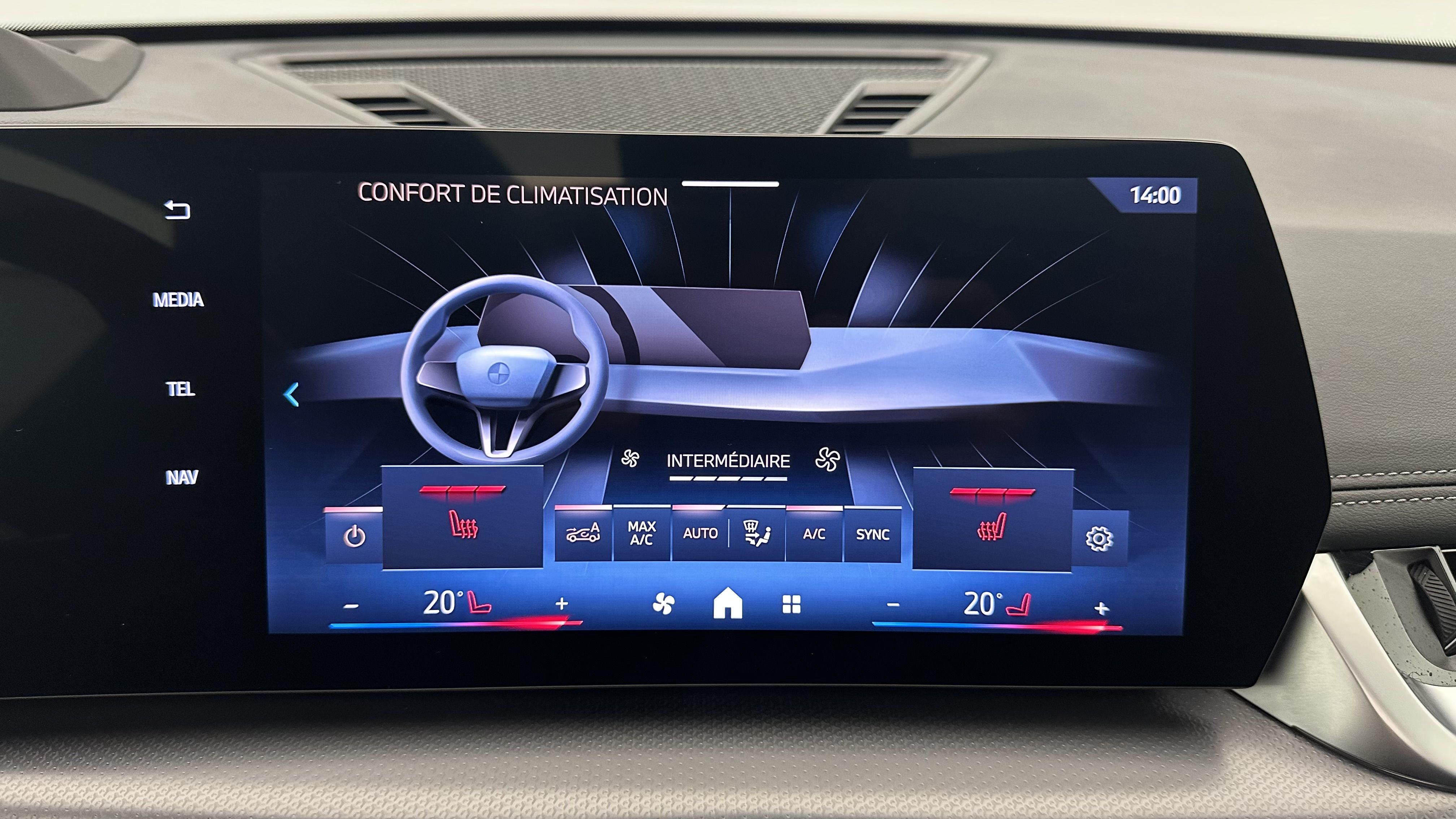 - Climatisation automatique 2 zones Contrôle de la température et du volume d'air distribué avec 5 niveaux d'intensité, réglables séparément entre le conducteur et le passager. Fonctionnalité SYNC pour que les réglages du conducteur s'appliquent à l'ensemble de l'habitacle. Contrôle commun de la température à l'AR. Capteur d'humidité et d'ensoleillement, filtre à charbon actif et microfiltre.