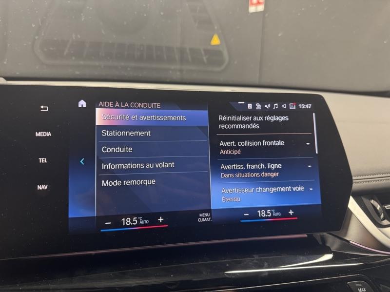 Accès Confort,Affichage Tête Haute HUD couleur,Aides à la conduite Driving Assistant,Aides au stationnement Parking Assistant Plus,Appel d'Urgence Intelligent,Attelage de remorque,Avertisseur de risque de collision et système anti collision à basse vitesse,BMW Live Cockpit Navigation Professional,Boîte de vitesses automatique à double embrayage,Dalle de recharge par induction pour smartphone,Ecrous antivol de roues,Exterieur Aluminium Line satiné,Feux de route anti-éblouissement,Finition xLine,Fixation i-Size ou Isofix à l'avant avec désactivation de l'airbag passager,Inserts décoratifs brillants "Schwarz",Kit de mobilité,Mesure individuelle de pression de pneumatiques,Pack Confort,Pack Connected Professional (durée limitée 3 ans),Pack Innovation,Planche de bord Sensatec,Projecteurs Advanced Full LED,Rails de toit Aluminium satine,Remise Contrat BMW Service Inclusive,Rétroviseur intérieur anti-éblouissement,Rétroviseurs rabattables et intérieur et extérieur gauche antiéblouissement,Sellerie Sensatec perforé Schwarz,Service Inclusive - 5 ans/100.000 km