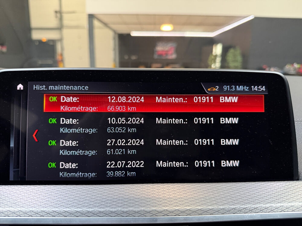 BMW X4 G02 M40d 326ch BVA8// 4 roues motrices Accoudoir arrière Accoudoir avant Affichage tête haute Airbag conducteur Airbag latéral conducteur et passager Airbag passager Airbags rideaux arrière Airbags rideaux avant Allumage automatique des phares Antidémarrage Appuie-tête arrière Assistance de freinage Assistant dynamique au maintien de voie Avertisseur d'angle mort Banquette arrière partagée et rabattable Boîte automatique 8 vitesses Caméra 360° Caméra de recul Climatisation automatique 3 zones Contrôle pression pneus (RDC) Démarrage sans clé Détecteur actif d'angle mort Détecteur de fatigue Détecteur pluie ESP (programme de stabilité électronique) Ecrous de roue antivol Fixation pour siège enfant Frein de stationnement électrique Hayon électrique Jantes/roues en alliage léger 21 Lecteur CD Lecteur MP3 Limiteur de vitesse Lève-vitres arrière électriques Lève-vitres avant électriques Ouverture de hayon à distance Phares antibrouillard Radar de stationnement arrière Radar de stationnement avant Régulateur de vitesse Régulateur de vitesse adaptatif Rétroviseur intérieur électrochrome Rétroviseurs extérieurs dégivrants Rétroviseurs extérieurs électriques Siège avant ventilé Siège conducteur chauffant Siège conducteur réglable en hauteur Siège conducteur réglable éléctriquement Siège conducteur à réglage lombaire électrique Siège passager chauffant Siège passager réglable en hauteur Siège passager réglable éléctriquement Siège passager à réglage lombaire électrique Sièges en cuir Sièges électriques à mémoire Système Check-control Système Start/Stop Système anti bloquage (ABS) Système audio Harman Kardon Sélection du mode de conduite Verrouillage centralisé télécommandé Virtual cockpit Volant avec palettes de changement de vitesses Volant chauffant Volant en cuir Volant multifonctions Volant sport
