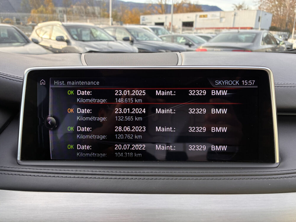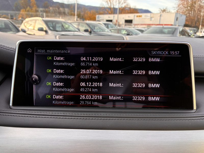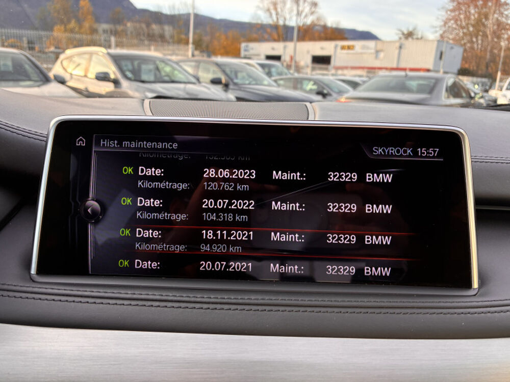 Caméra de recul,Cuir Dakota Schwarz,Inserts décoratifs en aluminium brossé,JA 19" style 450 à rayons en V,Pack BMW ConnectedDrive,Pyritbraun,Système de manoeuvres « Park Assist »,ABS,Accoudoir arrière,Accoudoir central AV avec rangement,AFIL,Aide au démarrage en côte,Aide au freinage d'urgence,Airbag conducteur,Airbag passager déconnectable,Airbags latéraux avant,Airbags rideaux AV et AR,Alarme,Alarme périmétrique,Alarme volumétrique,Antidémarrage électronique,Antipatinage,Appel d'Assistance Localisé,Appel d'Urgence Localisé,Appui-tête conducteur réglable hauteur,Appui-tête passager réglable en hauteur,Appuis-tête avant actifs,Arrêt et redémarrage auto. du moteur,Bacs de portes arrière,Bacs de portes avant,Banquette 40/20/40,Banquette AR rabattable,Banquette arrière 3 places,Barres de toit,Boite à gants fermée,Boucliers AV et AR couleur caisse,Capteur de luminosité,Capteur de pluie,Ceinture de vitrage chromée,Clim automatique bi-zones,Coffre assisté électriquement,Colonne de direction électr. à mémoire,Commandes vocales,Compte tours,Contrôle de freinage en courbe