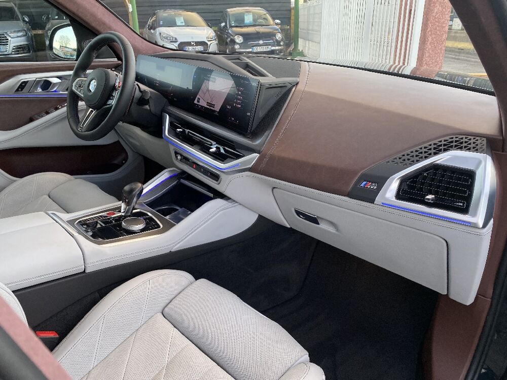 2 logos BMW gravés au laser en haut à gauche et à droite de la lunette AR, 3ème feu stop à LED intégré au spoiler, 5 sièges, ABS (système de freinage antiblocage) y compris assistant de freinage d'urgence en virage, Accès Confort, Accoudoir central AV/AR, Airbag central (siège conducteur), Airbag passager AV déconnectable, Airbags de tête (se déploient depuis la garniture de pavillon) pour le 1er et le 2e rang de sièges, Airbags frontaux conducteur et passager AV avec détection d'occupation du siège, Airbags latéraux conducteur et passager AV (intégrés dans les dossiers de siège AV), Alarme antivol, Anti-démarrage électronique EWS IV, Appel d'Urgence Intelligent (durée de vie de la voiture), Appui lombaire ajustable pour le conducteur et le passager AV, Appuis-tête AV/AR, Assistant d'attention avec analyse du comportement de conduite du conducteur : détection somnolence, Avertisseur 2 tons, Avertisseur de risque de collision et système anti collision à basse vitesse, Avertisseur sonore pour piétons, Bandes décoratives de toit en noir brillant, Banquette AR rabattable 40/20/40, BMW IconicSounds Electric, BMW ID permettant d'enregistrer des paramètres personnalisés et d'avoir accès à toutes les fonctionnalités, BMW iDrive avec caractéristiques M, BMW Live Cockpit Navigation Pro (Affichage Tête Haute HUD en couleur et Réalité Augmentée), Boîte à gants verrouillable, Boîte de vitesses automatique Sport Steptronic à 8 rapports avec fonction Hold et palettes de changement de vitesse au volant, Bouton de démarrage du moteur Start/Stop sans manipulation de la clé, Buses de lave-glace chauffantes dissimulées sous le capot, Câble de recharge BMW Flexible Charger 2.0 Mode 2 (prise domestique - T2) pour la recharge à domicile - 6 mètres, Câble de recharge Professionnel Mode 3 (T2-T2) pour la recharge publique - 5 mètres, Cadres de fenêtres latérales comprenant une bande en Night Gold avec badge XM, Calandre illuminée "BMW Iconic Glow", Ceintures de sécurité M, Ciel de pavillon sculptural 3D illuminé en Alcantara noir, Clés radiocommandées à mémorisation automatique des réglages "Personal Profile" (x 2), Climatisation automatique 4 zones, Commande électrique du coffre, Commande gestuelle, Contrôle Dynamique de stabilité DSC, Contrôle dynamique de traction DTC, Dalle de recharge par induction, Désignation du modèle "XM" à gauche, Désignation du modèle XM en Night Gold AR gauche, Détecteur de pluie et allumage automatique des projecteurs dans l'obscurité, Différentiel M Sport, Diffuseur AR en noir brillant avec éléments décoratifs en Night Gold, Direction à assistance électrique Servotronic, Drive Assist, Eclairage au sol (Welcome Light Carpet), Eclairage d'ambiance, Ecrous de roues antivol, Eléments de commande galvanisés, Entourage de calandre en Night Gold, Entourage de fenêtre latérale comprenant une bande en Night Gold avec badge XM, Entrées d'air extérieures et centrales dans le pare-chocs AV en noir brillant, Fermeture assistée des portes Soft Close, Fermeture du véhicule avec verrouillage centralisée et verouillage des portes après démarrage, Feux AR à technologie LED en 2 parties, Feux de route anti-éblouissement, Feux de stop dynamiques clignotants, Fixations ISOFIX aux 2 places latérales AR, Fonction "Follow me Home", Frein de parking électromécanique, Freins à disques ventilés AV/AR, Freins M Sport noirs, Hayon sans logo BMW, Inserts de poignée de porte prisme en noir brillant, Inserts décoratifs M en fibre de carbone, Jantes en alliage léger 21" M rayons doubles style 918 M avec pneumatiques mixtes AV : 9, Kit de mobilité BMW, Lève-vitres AV/AR électriques avec commande par impulsion et sécurité anti-pincement, Logo XM dans la calandre gauche, Logo XM entouré en Night Gold dans la calandre à gauche, Mesure individuelle de pression des pneumatiques, Motorisation M Hybrid V8 avec M TwinPower Turbo essence V8 (Injection directe, Notice d'utilisation de la voiture intégrée et carnet d'entretien électronique avec BMW Service History, Pack aérodynamique M, Pack chauffage intégral, Pack Confort, Pack Connected Pro (dont Apple CarPlay et Android Auto), Pack Connected Pro (dont Apple CarPlay et Android Auto) Fonctions "Ma BMW à distance" (durée indéfinie) :commande à distance du véhicule (verrouillage, Pare-chocs déformables en cas de choc, Pare-soleil (en alcantara) pour conducteur et passager AV avec porte-ticket, Park Assist Plus, Park Assist Plus Caméra de recul intégrée, Passage de roue en noir brillant, Personal eSim, Poches de porte AV/AR (1 bouteille de 1, Poignées de maintien dans les 1ère et 2ème rangs de sièges (sièges extérieurs) intégrées dans le ciel de pavillon, Porte-gobelets : 2 x AV et 2 x accoudoir central AR (pour les passagers de la deuxième rangée de sièges), Portes gobelets chauffant et réfrigérant, Prises 12V (chargeable jusqu'à 20A max.) : 1 x console centrale AV, Prises USB : 1x port