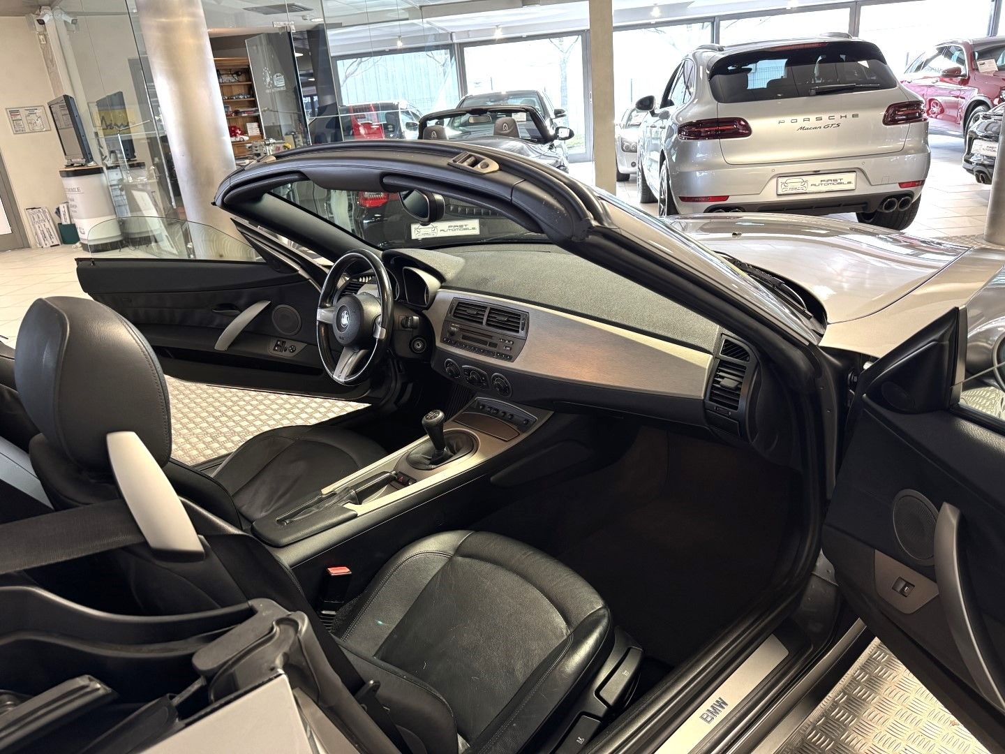 Jolie BMW Z4 Roadster 2.2 Litres,Boite mécanique 5 rapports,De couleur Gris Sterling et Sellerie en cuir noir. Dossier d'entretien à jour,Carte grise française. Climatisation Automatique,Régulateur de vitesse,Volant Sport en cuir,Direction assistée,Verrouillage centralisé des portes,Vitres électriques, Jante Turbine style 18",Capote électronique Noire,Tapis de sol velours,Rétroviseur int/ extérieure automatique,Sièges conducteur et passager Chauffants,Système aide au stationnement PDC,Phares antibrouillard,Ordinateur de bord,Système de haut parleur Hifi,Radio BMW Business CD,Étriers de frein Rouges, Très bel état ! Moteur 6 Cylindres en ligne