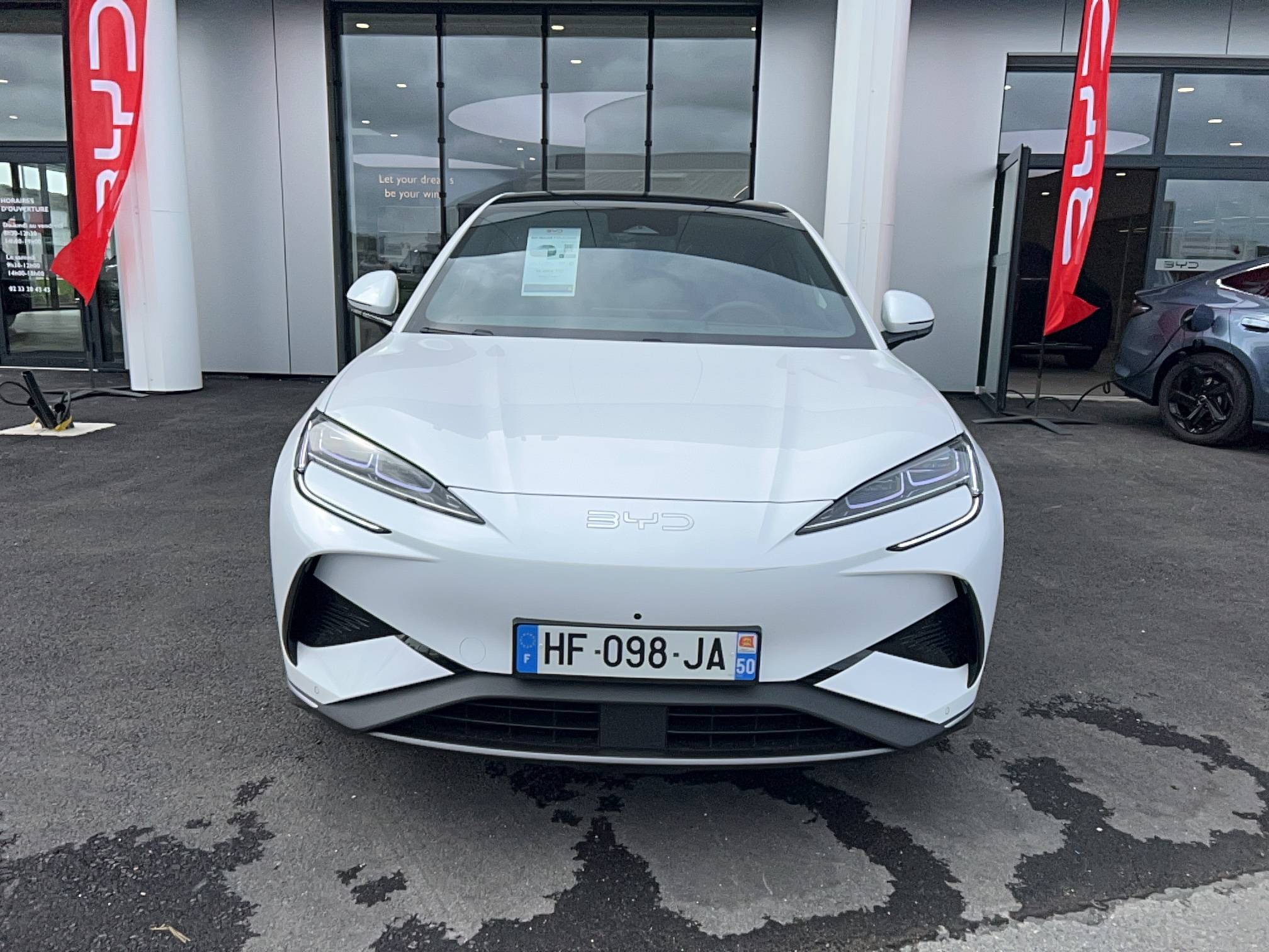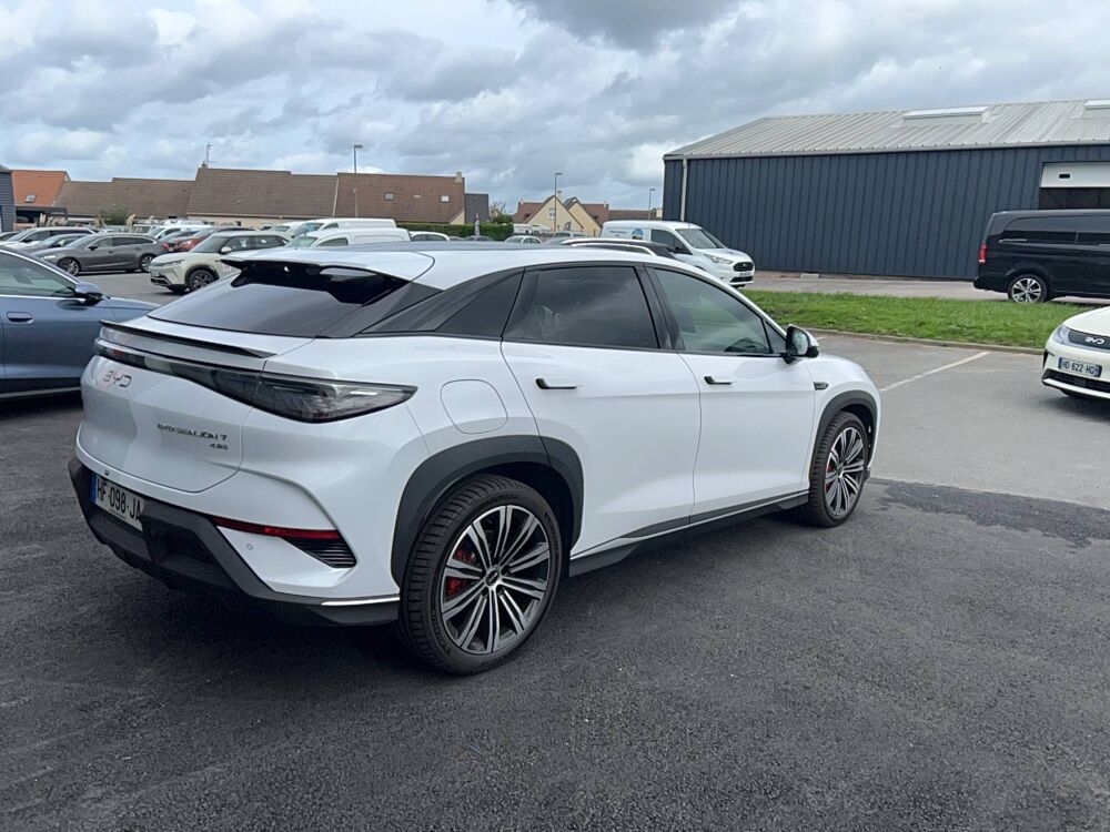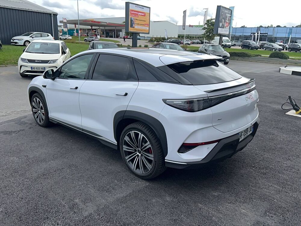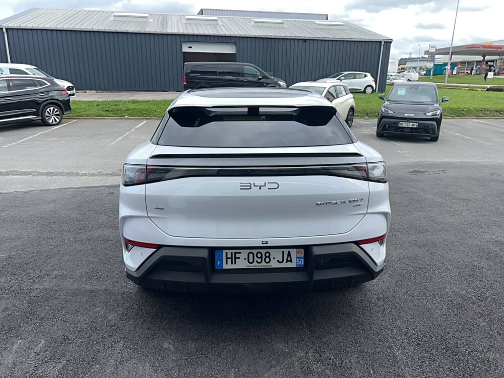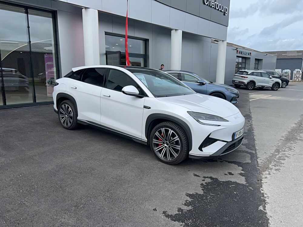 Automatique, 2 x clé intelligente et 1 x carte-clé NFC, 4 x lève-vitre à impulsion avec fonction anti-pincement, Accès et démarrage sans clé, Accoudoir AR, 2 porte-gobelets, Accoudoir central AV, 2 porte-gobelets, Affichage tête haute (HUD), Aide d'urgence au maintien dans la voie (ELKA), Airbag central AV, Airbag conducteur, Airbag passager AV, Airbag passager AV, contacteur de désactivation, Airbags latéraux AV et AR, Airbags rideaux, Alarme de ceintures de sécurité AV et AR non bouclées, Alerte de trafic transversal AR (RCTA) et freinage en cas de trafic transversal AR (RCTB), Alerte de trafic transversal AV (FCTA) et freinage en cas de trafic transversal AV (FCTB), Appel d'urgence, Apple CarPlay / Android Auto, Assistance feux de route (HMA), Assistance hydraulique au freinage (HBA), Avertissement de collision AR (RCW), Avertissement de collision AV (FCW), Avertissement de distraction du conducteur (DDW), Avertissement de sortie de voie (LDW), Avertissement d'ouverture de porte (DOW), Boîte de vitesse automatique à variation continue, Bouches d'aération AR, Caméra de vue à 360°, Ceintures de sécurité AR à prétensionneur, Ceintures de sécurité AV à prétensionneur et réglables en hauteur, Charge sans fil de smartphone 50W, Chargeur embarqué 11 kW (OBC), Clignotants de rétroviseurs extérieurs, Clignotants dynamiques, Coffre AV, Coloris d'habitacle - Noir ou Tahiti blue, Commande de centrage dans la voie (LCC), Commande de climatisation à double zone, Commande intelligente de feux de route (IHBC), Commande vocale intelligente - "Hi, BYD", commande vocale quadri-zone, Connectivité 4G embarquée, Contrôle de la dynamique du véhicule (VDC), Contrôle de limite de vitesse intelligent (ISLC), Contrôle de maintien en côte (HHC), Contrôle de stabilité électronique (ESC), DAB et FM, Décélération contrôlée pour frein de stationnement (CDP), Détection d'angle mort (BSD), Détection de présence d'enfant (CPD), Direction assistée, Distribution électronique de la force de freinage (EBD), Eclairage d'accompagnement (fonction d'allumage anticipé et d'extinction différée des phares), Eclairage d'accueil dynamique, Eclairage d'ambiance multicolore, Eclairage de boîte à gants, Eclairage de coffre, Eclairage de la console centrale, Eclairages à LED des quatre portes, Eclairages de sol de siège AV, multicolores, Eclairages de sol par les rétroviseurs extérieurs, Ecran tactile rotatif électrique 15,6", Feu de virage, Feux antibrouillard AR, Feux AR à LED, Feux de jour à LED, Fonction de facturation de rendez-vous, Fonction Véhicule à chargement (V2L), Freinage d'urgence automatique (AEB), Frein de stationnement électrique (EPB), Générateur d'ions négatifs, Gestion de la fatigue du conducteur (DFM) directe, Hayon électrique, fonction d'ouverture par coup de pied, Indicateur de charge multicolore à LED, ISOFIX et i-Size, siège passager AV et sièges AR externes, Jantes alliage 20'' bicolores, Lampes de lecture AV à LED, Lampes de lecture latérales AR à LED, Lunette AR, chauffante, désembuage, dégivrage, Lunette AR, vitrage surteintée, Maintien automatique, Mode Easy Access, Modes de conduite : Éco, Confort, Sport, Neige, Navigation, Pare-brise AV, essuie-glaces à détection de pluie, désembuage, dégivrage, Pare-brise AV et vitres AV, protection anti-UV, isolation thermique, insonorisation, Pare-soleil AV avec éclairage du miroir, Peinture métallisée, Phares à LED, allumage/extinction automatique, Pneus 245/45 R20, Point d'accès Wi-Fi dans la voiture, Pompe à chaleur, Ports USB AR, 1x 18W Type C, 1x 60W Type C, Ports USB AV, 1 x 18 W type C, 1 x 60 W type C, Radars de stationnement, AV/AR, Reconnaissance des panneaux de signalisation (TSR), Régulateur de vitesse adaptatif (ACC), Rétroviseur à atténuation automatique, Rétroviseurs extérieurs, réglables et rabattables électriquement, chauffants, inclinaison auto. en marche AR, mémoire de position, Service Cloud - Appli BYD, Siège conducteur, 2 x pochettes pour dossier, Siège conducteur avec appuie-tête intégré, Siège conducteur, réglable électriquement, 8 directions, mémoire de position, Siège conducteur, soutien de jambes à commande électrique, Siège conducteur, soutien lombaire à commande électrique, 4 directions, Siège conducteur, ventilé, chauffant, réglage mémorisé, Siège passager avant, 2 x pochettes pour dossier, Siège passager AV avec appuie-tête intégré, Siège passager AV avec ventilation et chauffage, Siège passager AV, réglable électriquement, 6 directions, Sièges AR, angle de dossier réglable manuellement, Sièges AR, appuie-tête réglable manuellement, Sièges AR, chauffant, Sièges AR rabattables séparément - 40:60, Sièges en cuir, Sortie électrique 12 V, Système antipatinage (TCS), Système audio Dynaudio, 12 HP, Système de