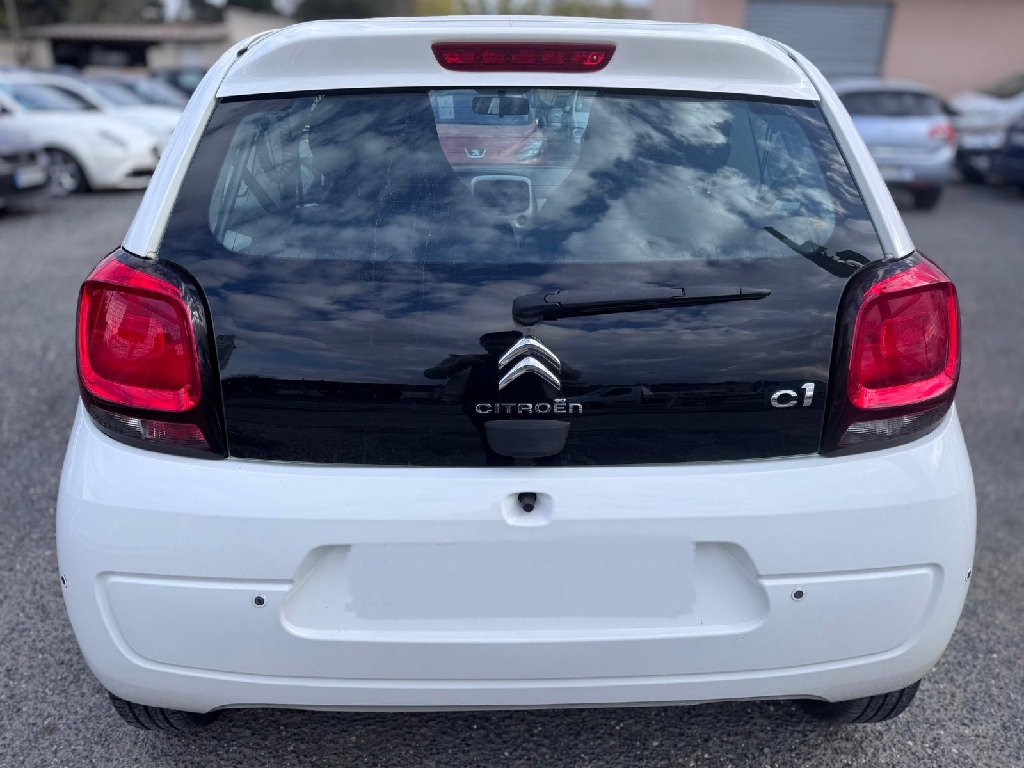 CITROEN C1 (VTi 68 ETG Feel) BLANC.ABS, AFU, ESP, Aide au démarrage en pente, Aide au stationnement AR, Airbags frontaux AV, latéraux AV et rideaux, Appuistête AR, Banquette AR fractionnable, Boîte à gants fermée, Boucliers ton caisse , Camèra de recul, Climatisation, Condamnation centralisée avec 2 PLIP HF, Coques de rétroviseurs et poignées de portes peintes couleur caisse, Détecteur de sousgonflage, Direction assistée avec volant réglable en hauteur, Enjoliveurs 14" Star, ESP, Feux diurnes à LED, Fixations ISOFIX aux places AR, Garnissage Tissu Zebra, Garnissage Tissu Zebra Red, Kit de dépannage provisoire de pneumatiques, Lèvevitres AV électriques, Ordinateur de bord, Pack Electrique, Projecteurs elliptiques, Siège conducteur réglable en hauteur, Système audio MP3 4HP avec Connecting Box (Kit mains libres Bluetooth), Système audio MP3 4HP avec kit mains libres Bluetooth et prise USB Comprend les commandes au volant, Système audio MP3 4HP avec Connecting Box (Kit mains libres Bluetooth), Système audio MP3 4HP avec kit mains libres Bluetooth et prise USB Comprend les commandes au volant, Tablette tactile 7" mirror Screen, Tissu Wave Grey, Tissu Zebra Red, Volant croûte de cuir,, 5 vitesses, 4 places, puissance fiscal : 4, puissance din : 68, émission de CO2 : 97 g/km.
