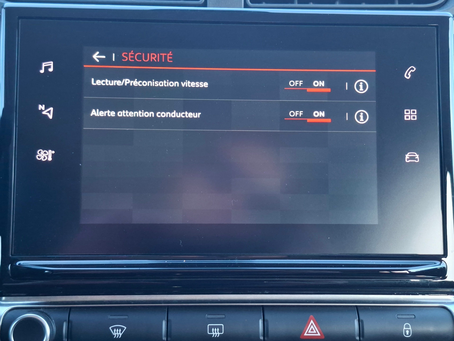 Equipements supplémentaires : ABS avec REF, AFU et ESP, Aide au demarrage en pente, Aide au stationnement AR, Airbags frontaux AV, lateraux AV et rideaux, Airbump Black avec gelule Blanc Banquise, Bandeau de planche de bord Noir Brillant, Bandeau de planche de bord Noir Brillant avec cerclage Chrome Satin, Banquette AR fractionnable 2/3 - 1/3, Clignotants impulsionnels, Climatisation automatique, Commandes au volant du systeme audio, Condamnation centralisee avec 2 PLIP HF, Condamnation centralisee avec PLIP, Coques de retroviseurs couleur pavillon, Decors exterieurs Noir Brillant, Detection de sous-gonflage, Direction assistee, Elargisseurs d'ailes et bas de caisse Noir Mat, Feux AR a effet 3D, Feux diurnes a LED, Fixations ISOFIX sur sieges passagers AR, Garnissage tissu Mica Grey, Kit de depannage provisoire de pneumatiques, Kit mains libres Bluetooth et prise USB, Leve-vitres AV electriques, Leve-vitres AV sequentiels, Mirror Screen, MyCitroen Play, Pack Color Noir, Pack Safety, Pack Visibilite, Pare-soleil avec miroir occultable cotes conducteur et passager, Poignees de portes exterieures couleur caisse, Prise 12V a l'AV, Projecteurs antibrouillard, Projecteurs LED, Regulateur-limiteur de vitesse, Retroviseurs exterieurs electriques et degivrants, Retroviseurs exterieurs rabattables electriquement, Securite enfants mecanique, Siege conducteur reglable en hauteur, Systeme audio numerique (DAB) MP3 6 HP, Tissu Mica Grey, Vitres et lunette AR surteintees, Volant mousse reglable en hauteur et en profondeur, Volant reglable en hauteur et en profondeur, Acces et demarrage mains libres, Decor central de toit Emeraude, Decor central de toit Rouge, Decor central de toit Techwood, Extension Services Connect Nav / My Citroen Drive 1 an, Extension Services Connect Nav / My Citroen Drive 3 ans, Garnissage mixte Tissu Brumeo/Tissu effet cuir Isabella, Garnissage tissu Galena Grey-, Leve-vitres AR electriques et sequentiels, MyCitroen Drive navigation sur tablette tactile 7'': comprend le systeme de navigation TomTom,, Pack Color Blanc, Pack Color Emeraude anodise, Pack Color Rouge, Pack Safety 2, Predisposition pour roue de secours, Sans Airbump Black, Services Connect Nav / My Citroen Drive, Sieges AV chauffants, Suppression de l'Aide au stationnement AR, Teinte de caisse metallisee Gris Acier, Teinte de caisse metallisee Gris Acier bi-ton, Teinte de caisse metallisee Gris Platinium, Teinte de caisse metallisee Gris Platinium bi-ton, Teinte de caisse metallisee Spring Blue, Teinte de caisse metallisee Spring Blue bi-ton, Teinte de caisse nacree Noir Perla Nera, Teinte de caisse nacree Noir Perla Nera bi-ton, Teinte de caisse nacree Sable, Teinte de caisse nacree Sable bi-ton, Teinte de caisse opaque Blanc Banquise, Teinte de caisse opaque Blanc Banquise bi-ton, Teinte de caisse speciale nacree triple couche Rouge Elixir, Teinte de caisse speciale nacree triple couche Rouge Elixir bi-ton, Zone de danger 1 an, Zone de danger 3 ans.