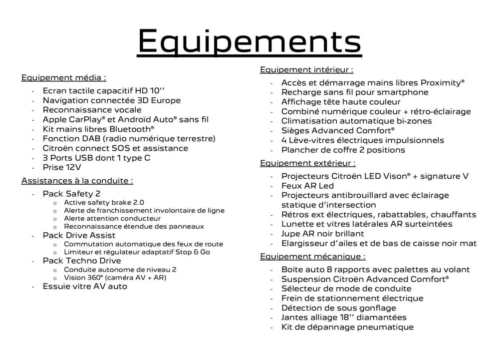 Equipements :
