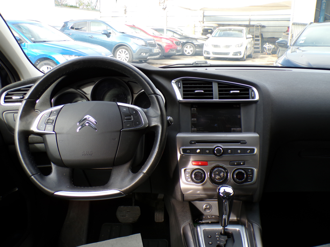 CITROEN C4 (C4 PureTech 130 S et S EAT6 Shine) BLEU NOIR.ABS + REF + AFU, Accès et démarrage mains libres, Accoudoir central AR avec trappe à skis, Accoudoir central AV, Aide au stationnement AR, Aide au stationnement AV, Airbags frontaux AV, latéraux AV et rideaux, Allumage automatique des feux de croisement, Allumage automatique des feux de détresse, Baguettes latérales chromées, Banquette AR 2/3 - 1/3, Becquet AR noir brillant, Bouclier AV/AR avec inserts chromés, Citroën Connect Box avec Pack SOS et assistance inclus, CITROËN Connect Nav sur tablette tactile 7 + CITROËN Connect Box avec pack SOS et assistance inclus, Climatisation automatique bizone, Condamnation centralisée avec 2 PLIP HF, Contrôle de Traction Intelligent, Coques de rétroviseurs extérieurs couleur caisse, Coques de rétroviseurs extérieurs et embases couleur caisse, Coques et embases des rétroviseurs extérieurs Rouge Scarlet, Détecteur de sous-gonflage, Direction à assistance variable, ESP, Essuie-vitre AV automatique, Feux diurnes à LED, Frein de stationnement électrique automatique, Garnissage Tissus Saint Cyr et Dinamica / Cuir Mistral, Jantes alliage 17, Jantes alliage 17 + Roue de secours homogène, Jantes alliage 17 Miami, Jonc chromé sur le bouclier AR, Joncs chromés sur les lécheurs de vitres latérales, Kit de dépannage provisoire de pneumatiques, Kit mains libres Bluetooth et prise USB, Lampe nomade dans le coffre, Lève-vitres AR électriques, Lève-vitres AV électriques, Lunette AR surteintée, Miroir Screen, Pack Urbain 1, Pack Urbain 1+ Accès et démarrage mains libres, Pack Urbain 2, Pack Urbain 2 + Accès et démarrage mains libres, Poignées de portes extérieures couleur caisse, Poignées de portes Noir Perla Nera avec jonc chromé, Pommeau de levier de vitesse en Cuir, Pommeau et soufflet de levier de vitesses en Cuir, Prise 12 V dans le coffre, Projecteurs antibrouillard avec éclairage statique d'intersection, Régulateur - limiteur de vitesse programmable, Rétroviseur extérieur passager indexé à la marche AR, Rétroviseur intérieur électrochrome, Rétroviseurs extérieurs dégivrants et réglables électriquement, Rétroviseurs extérieurs rabattables électriquement, Siège conducteur avec réglage lombaire et accoudoir, Siège conducteur massant avec réglage lombaire électrique, Siège conducteur réglable en hauteur, Siège passager AV réglable en hauteur, Siège passager avec réglage lombaire, Sièges conducteur et passager avec réglage lombaire, Surtapis AV et AR, Système Audio CD MP3 6HP, Système Audio CD RDS 6 HP MP3, Système de navigation sur tablette tactile 7, Système de surveillance d'angle mort, Tablette tactile 7 avec écran capacitif, Tiroir sous siège conducteur, Tiroir sous siège passager, Tiroirs de rangement sous sièges AV, Tiroirs sous sièges passager, Toit peint en Noir Perla Nera, Vitres et lunette AR surteintées, Volant croûte de cuir, Volant cuir pleine fleur, Volant mousse réglable en hauteur et en profondeur, 6 vitesses, 5 places, puissance fiscal : 7, puissance din : 130, émission de CO2 : 117 g/km.