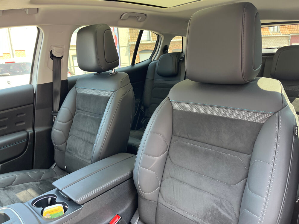 Equipements supplémentaires : 3 sieges AR independants, coulissants, inclinables et escamotables, ABS + AFU + ESP + REF, Acces et demarrage mains libres, Accoudoir central mousse a ouverture papillon et refrigere, Aerateurs en rang 2, Aide au demarrage en pente, Aide au stationnement AR, Aide au stationnement AV, Aide au stationnement AV + Camera de recul avec Top Rear Vision, Airbags frontaux AV, lateraux AV et rideaux, Alerte attention conducteur, Allumage automatique des feux de croisement, Appuis-tete AV reglables, Barres de toit Noir Brillant avec insert Noir mat, Calandre Noir Brillant avec chevrons noir brillant et entourage Chrome, Calandre superieure Noir Brillant, Camera de recul avec Top Rear Vision, Camera de recul avec Top Rear Vision sans aide au stationnement AV et AR, Camera de recul avec Top Rear Vision+ Aide au stationnement avant, Clignotants AV a LED, Clignotants impulsionnels, Climatisation automatique bi-zone, Condamnation centralisee avec 2 PLIP HF, Condamnation centralisee avec PLIP, Coques de retroviseurs exterieurs Noir Brillant, Coques de retroviseurs Noir Perla Nera, Custodes AR surteintees, Detection de sous-gonflage, Direction a assistance electrique, Eclairage d'accueil et d'accompagnement, Elargisseurs d'aile et bas de caisse Noir Mat, Enjoliveur de montant central Noir Brillant, Enjoliveurs de contour de vitres laterales chromes, Enjoliveurs de montant central Noir Brillant, Essuie-vitres AV automatique Magic Wash, Feux AR 3D a LED, Feux diurnes a LED, Feux diurnes a LED avec clignotants a LED, Fixations ISOFIX sur les sieges passager AV et lateraux AR, Frein de stationnement electrique automatique, Garnissage Alcantara Noir/Tissu effet cuir Noir/Ambiance Urban Black, Inserts colores Dark Chrome sur Airbump et bouclier AV, Kit de depannage provisoire des pneumatiques, Kit mains libres Bluetooth et 2 prise USB, Kit mains libres Bluetooth et 3 prises USB, Leve-vitres AV et AR electriques et sequentiels, My Citroen Assist : Citroen Connect Box avec Pack SOS et assistance inclus, My Citroen Play - Mirror Screen sans fils, compatible Android Auto et Apple CarPlay, Systeme audio, My Citroen Play : Mirror Screen, Systeme audio numerique (DAB), Pack Color Dark Chrome, Pack Drive Assist, Pack Safety, Pack Safety +, Pare-chocs AR avec double canule chromee, Pedalier et repose pieds aluminium, Plafonnier AV a lampes avec lecteurs de cartes, Planche de coffre escamotable, Plancher de coffre escamotable, Poignees de portes exterieures couleur caisse, Prises 12 V sur la console centrale et dans le coffre, Prises 12V sur la console centrale et dans le coffre, Projecteurs antibrouillard avec eclairage statique d'intersection, Projecteurs LED, Retroviseur interieur electrochrome, Retroviseurs exterieurs electriques degivrants, Retroviseurs exterieurs rabattables electriquement, Retroviseurs exterieurs rabattables electriquement avec eclairage d'accueil, Sabots AV et AR Gris aluminium, Sabots de protection Aluminium Brillant, Securite enfants mecanique, Seuils de portes AV Inox, Siege conducteur avec reglage lombaire, Siege conducteur avec reglage lombaire et accoudoir, Siege conducteur electrique (8 voies), Sieges Advanced Comfort, Sieges conducteur et passager reglables en hauteur, Surtapis AV et AR, Suspension Citroen Advanced Comfort, Tapis de fonde de coffre, Temoin de non-bouclage des ceintures de securite conducteur et passagers, Vitres et lunette AR surteintees, Vitres laterales AV feuilletees et acoustiques, Volant a commandes integrees, Volant croute de cuir, Volant mousse reglable en hauteur et en profondeur, Volant reglable en hauteur et en profondeur, Toit ouvrant vitre panoramique + Pack Color Dark Chrome, ***NOS VEHICULES SONT VISIBLES UNIQUEMENT SUR RDV***
