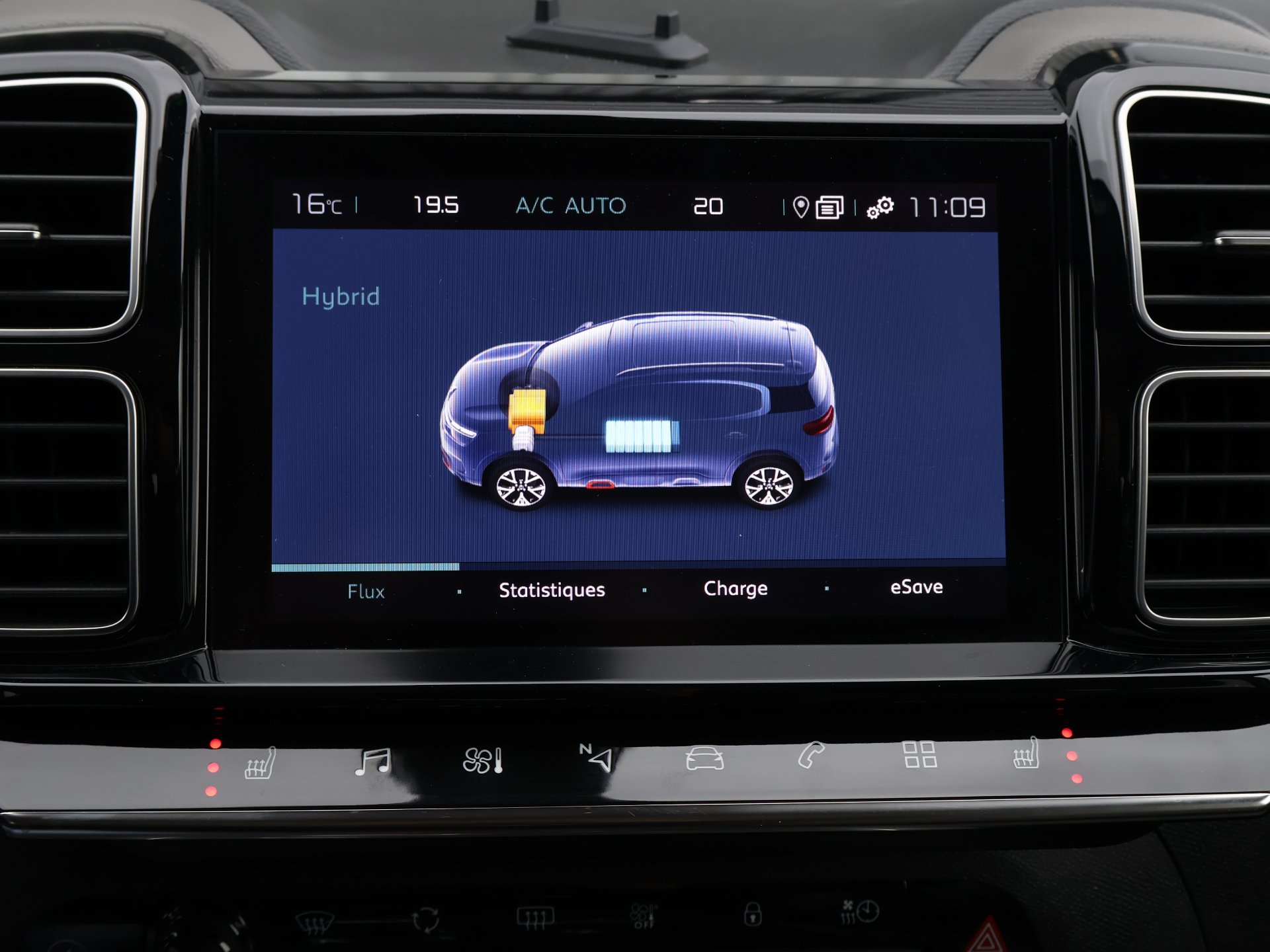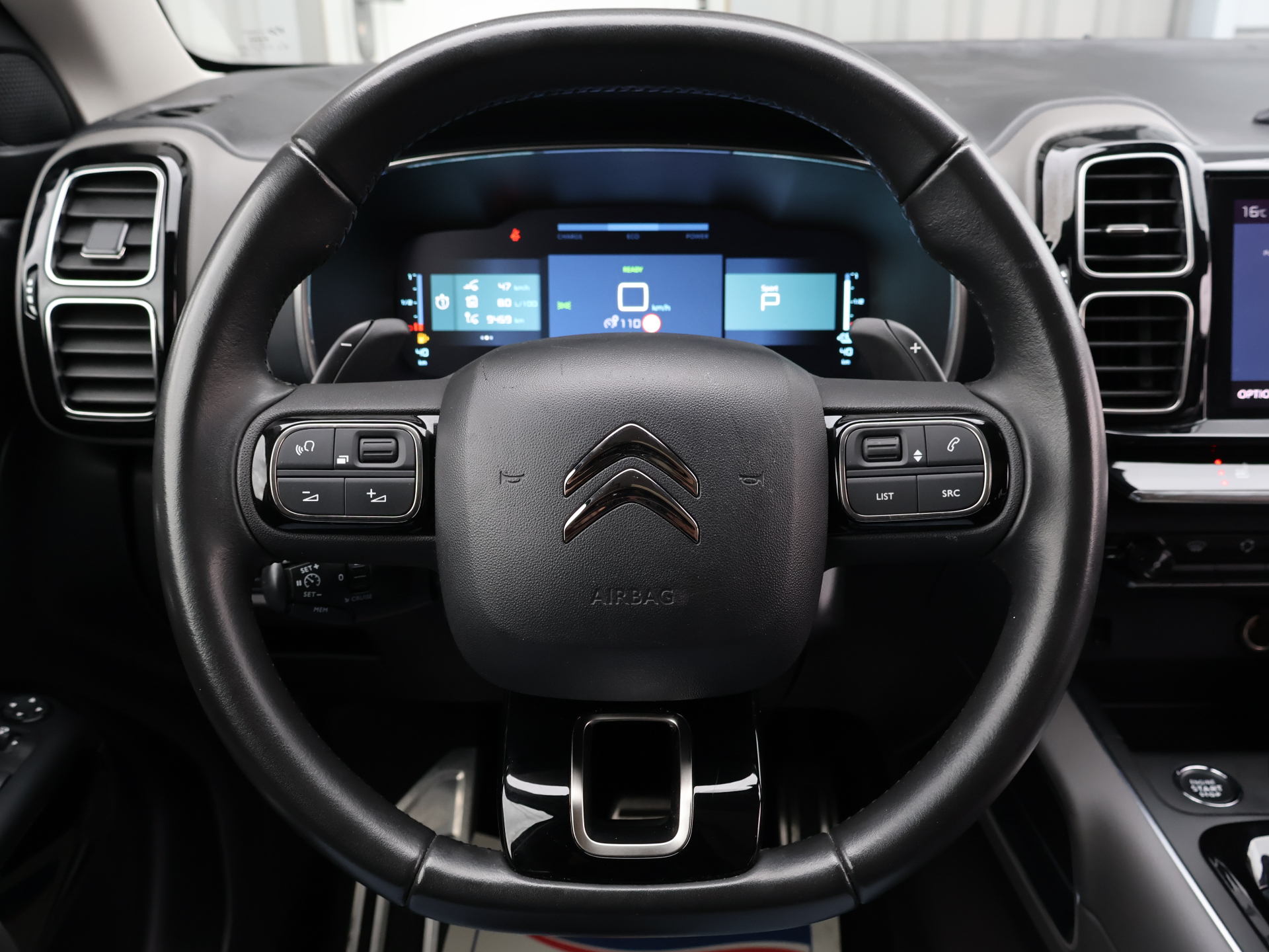Equipements : Combine numerique 12,3" personnalisable, Jantes alliage 19" ART Diamantees bi-ton, My Citroen Drive avec ecran tactile 10", My Citroen Play Hybrid avec tablette tactile 10", Retroviseur interieur electrochrome HYBRID avec LED "ZEV Mode", Systeme Stop & Start