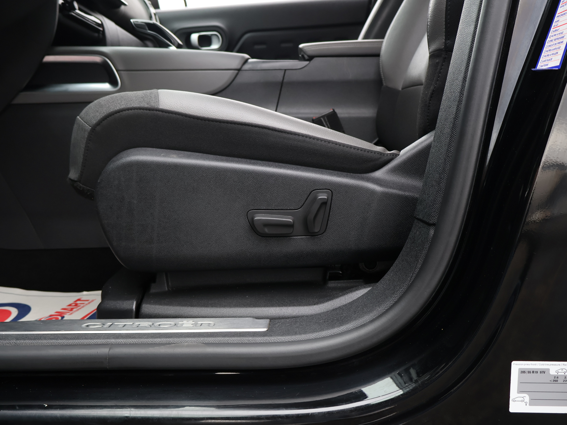 - 1/4 de Carburant Equipements supplémentaires : 3 sieges AR independants, coulissants, inclinables et escamotables, ABS + AFU + ESP + REF, Acces et demarrage mains libres, Accoudoir central mousse a ouverture papillon et refrigere, Aerateurs en rang 2, Aide au demarrage en pente, Aide au stationnement AR, Aide au stationnement AV, Aide au stationnement AV + Camera de recul avec Top Rear Vision, Airbags frontaux AV, lateraux AV et rideaux, Alerte attention conducteur, Allumage automatique des feux de croisement, Appuis-tete AV reglables, Barres de toit Noir Brillant avec insert Noir mat, Cable de recharge Mode 2, prise de charge T2/EF, longueur 6 metres, Calandre Noir Brillant avec chevrons noir brillant et entourage Chrome, Calandre superieure Noir Brillant, Camera de recul avec Top Rear Vision, Camera de recul avec Top Rear Vision sans aide au stationnement AV et AR, Camera de recul avec Top Rear Vision+ Aide au stationnement avant, Chargeur embarque 3,7 kW, Clignotants AV a LED, Clignotants impulsionnels, Climatisation automatique bizone, Condamnation centralisee avec 2 PLIP HF, Coques de retroviseurs exterieurs Noir Brillant, Coques de retroviseurs Noir Perla Nera, Custodes AR surteintees, Detection de sous-gonflage, Direction a assistance electrique, Eclairage d'accueil et d'accompagnement, Elargisseurs d'aile et bas de caisse Noir Mat, Enjoliveur de montant central Noir Brillant, Enjoliveurs de contour de vitres laterales chromes, Essuie-vitres AV automatique Magic Wash, Feux AR 3D a LED, Feux diurnes a LED, Feux diurnes a LED avec clignotants a LED, Fixations ISOFIX sur les sieges passager AV et lateraux AR, Frein de stationnement electrique automatique, Garnissage Cuir Graine Noir/Tissu effect cuir Gris/Ambiance Metropolitan Black, Highway Driver Assist, Inserts colores Dark Chrome sur Airbump et bouclier AV, Kit de depannage provisoire des pneumatiques, Kit mains libres Bluetooth et 2 prise USB, Kit mains libres Bluetooth et 3 prises USB, Leve-vitres AV et AR electriques et sequentiels, My Citroen Assist : Citroen Connect Box avec Pack SOS et assistance inclus, Pack Color Dark Chrome, Pack Confort, Pack Drive Assist +, Pack Safety, Pack Safety +, Pare-chocs AR avec double canule chromee, Pedalier et repose pieds aluminium, Plafonnier AV a lampes avec lecteurs de cartes, Planche de coffre escamotable, Poignees de portes exterieures couleur caisse, Prises 12 V sur la console centrale et dans le coffre, Prises 12V sur la console centrale et dans le coffre, Projecteurs antibrouillard avec eclairage statique d'intersection, Projecteurs LED, Retroviseurs exterieurs electriques degivrants, Retroviseurs exterieurs rabattables electriquement, Sabots AV et AR Gris aluminium, Sabots de protection Aluminium Brillant, Securite enfants mecanique, Seuils de portes AV Inox, Siege conducteur avec reglage lombaire et accoudoir, Siege conducteur electrique (8 voies), Sieges Advanced Comfort, Sieges AV chauffants, Sieges conducteur et passager reglables en hauteur, Surtapis AV et AR, Suspension Citroen Advanced Comfort, Tapis de fonde de coffre, Temoin de non-bouclage des ceintures de securite conducteur et passagers, Vitres et lunette AR surteintees, Vitres laterales AV feuilletees et acoustiques, Volant a commandes integrees, Volant croute de cuir, Volant mousse reglable en hauteur et en profondeur, Chargeur embarque 7,4 kW, Pack Park Assist, Teinte de caisse nacree Noir Perla Nera, Toit ouvrant vitre panoramique + Pack Color Dark Chrome.