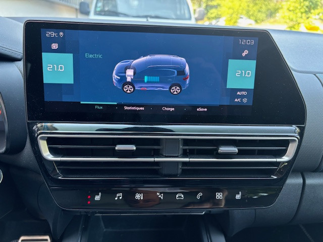 Bleu Eclipse,Câble recharge Mode 3 (32A) mono T2,Pack Park Assist,TO panoramique + Pk Color Dark Chrome,Cuir Grainé Noir,Tissu effet cuir Gris,Sièges rang 2 individuels,coul. rabat.,3 sièges individuels en rang 2,ABS,Accoudoir central AV avec rangement,AFIL,Aide au démarrage en côte,Aide au freinage d'urgence,Airbag conducteur,Airbag passager,Airbag passager déconnectable,Airbags latéraux avant,Airbags rideaux,Allumage des phares automatique,Appel d'Assistance Localisé,Appel d'Urgence Localisé,Assistance de maintien de trajectoire,Barres de toit,Caméra de recul,Capteur de pluie,Clim automatique bi-zones,Commandes vocales,Cuir Grainé Noir / Tissu effet cuir Gris,Démarrage sans clé,Détecteur de sous-gonflage,Dossier de sièges AR rabattables,Eclairage au sol,Eclairage statique d'intersection,Ecran multifonction couleur,Ecran tactile,ESP,Feux arrière à LED,Feux de freinage d'urgence,Feux de jour à LED,Fixation Isofix siège passager avant,Fixations Isofix aux places arrières,Follow me home,Fonction MP3,Frein stationnement électrique automatiq