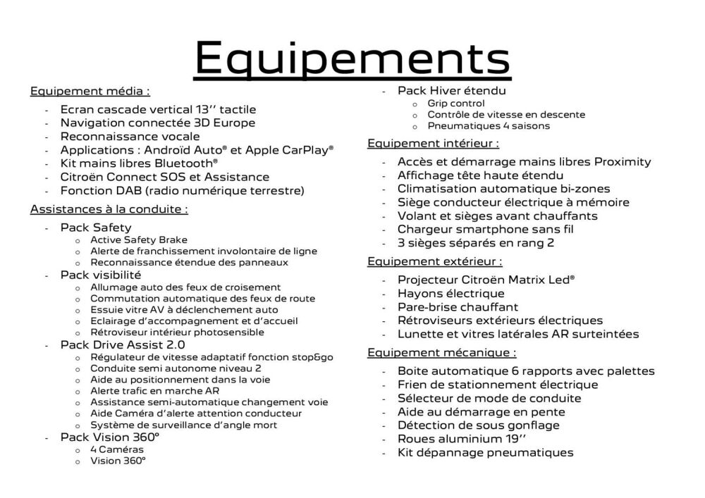 Equipements :