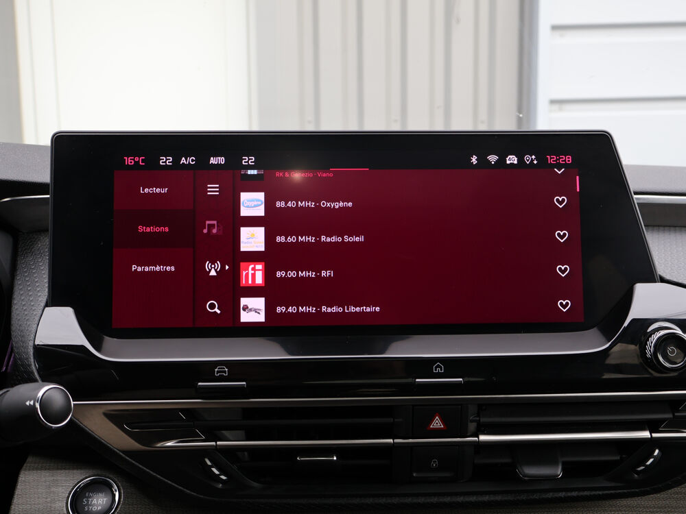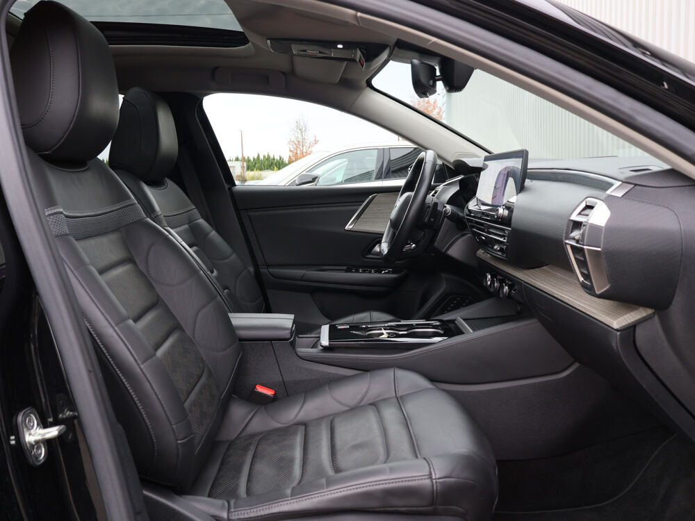reglages lombaires electriques (4 voies), Surtapis AV et AR, Suspension Active Citroen Advanced Comfort, Systeme audio numerique (DAB) MP3 8 HP, Systeme de surveillance d'angle mort longue distance, Temoin et alerte de non bouclage des ceintures conducteur et passagers AV et AR, Vision tete haute pare-brise couleur etendue, Visiopark 360°, Vitres AV et AR feuilletees et acoustiques avec decor custode chromes, Volant chauffant en cuir pleine fleur, Volant cuir avec commandes integrees, reglable en hauteur et en profondeur, Chargeur embarque 7,4 kW, HiFi System, Teinte de caisse nacree Noir Perla Nera, Toit ouvrant vitre.