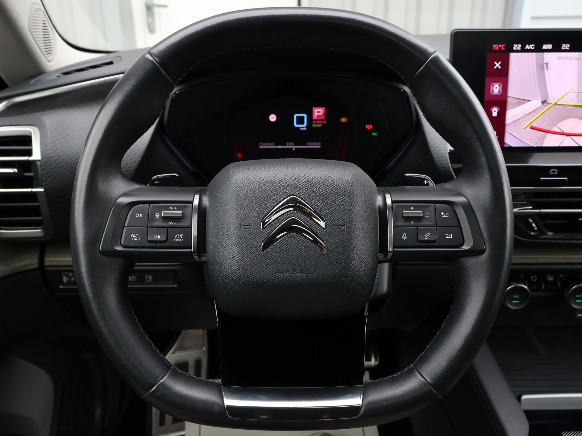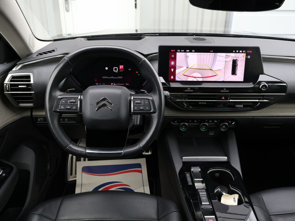 - Kit sécurité obligatoire (triangle et gilet haute visibilité) Equipements supplémentaires : 2 prises USB au rang 1 (type C) + 2 prises USB au rang 2 (type C), ABS + REF + AFU, Acces et demarrage mains libres Proximity, Accoudoir central AR avec porte-gobelets integre et trappe a skis, Active Safety Brake 2.0, Aerateurs centraux en rang 2, Aide au demarrage en pente, Aide au positionnement dans la voie, Aide au stationnement AR, Aide au stationnement AV, Airbags frontaux AV, lateraux AV et rideaux, Alerte attention conducteur, Alerte de Franchissement Involontaire de ligne (AFIL), Alerte de trafic AR, Alerte Risque Collision, Allumage automatique des feux de croisement, Allumage des feux de detresse en cas de forte deceleration, Appuie-tetes AV a reglage integre (4 voies), Avertisseur sonore pieton, Bacs de rangement sur portes AV/AR, Badges specifiques Hybrid sur les portes et ailes AV, Banquette AR fractionnable 2/3 - 1/3 avec Magic handles, Boite a gants avec eclairage LED, Cable de recharge Mode 2 (8 A), prise de charge domestique (T2/EF) longueur 6 metres, Camera de recul avec Top Rear Vision, Chargeur embarque 3,7 kW, Clignotants impulsionnels, Climatisation automatique bi-zone, Coffee Break Alert, Combine numerique couleur avec retro-eclairage, Commandes au volant du systeme audio, Commutation automatique des feux de route, Condamnation centralisee avec 2 PLIP HF, Connect Assist : Citroen Connect Box avec Pack SOS et assistance inclus, Console centrale haute avec rangements et accoudoir, Coques de retroviseurs exterieurs Noir Brillant, Decors de custode chromes, Detection de sous-gonflage, Direction a assistance electrique variable, Direction assistee, Eclairage a LED (boite a gants, coffre et rangement console centrale), Eclairage d'accueil et d'accompagnement, Eclairage de cave a pieds AV, Eclairage derriere le combine, sous le bandeau de planche et sous la console centrale, Eclairage interieur d'ambiance, Enjoliveurs de bas de portes, passages de roues et bas de boucliers AV et AR en noir gaine, Equipements de securite, ESP, Essuie-vitre AV automatique avec lavage embarque, Extended Head Up Display - Vision tete haute pare-brise couleur etendue, Feux AR 3D a LED avec signature permanente visible de jour, Feux diurnes a LED, Fixations ISOFIX aux places AR, Frein de stationnement electrique automatique, Garnissage Cuir Noir avec perforations chevrons-, Grille de calandre inferieure noir graine avec jonc chrome brillant, Hayon mains libres, Highway Driver Assist (systeme autonome de niveau 2), Kit de depannage provisoire de pneumatiques, Kit Mains Libres Bluetooth, Lecheurs inferieurs de vitre aspect noir mat, Leve-vitres AV et AR electriques et sequentiels, MyCitroen Drive Plus Citroen Connect Nav sur tablette tactile 12'', Neutralisation mecanique de l'airbag passager, Pack Visibilite, Palette de changement de vitesse au volant, Pare-choc AR avec decors chromes, Pare-choc AV avec decors chromes, Pare-soleils avec miroirs occultable eclairages a LED, Pedalier et repose pieds aluminium, Plafonnier AV et AR avec LED retro-eclairage push, Poche aumoniere au dos des sieges AV, Poignees de portes exterieures couleur caisse, Post Collision Safety Brake, Preconditionnement thermique, Predisposition filet de charges hautes rang, Prise 12 V dans le coffre, Prise 12 V en rang 1, Projecteurs antibrouillard LED avec eclairage statique d'intersection, Projecteurs LED avec signature lumineuse en V, Rails sur tapis de coffre en aluminium, Rangement dans accoudoir AR central avec 2 empreintes canettes, Rangement depose Smartphone AV l'accoudoir central, Rangement ferme en AV de la console centrale, Rangement sous accoudoir central, Recharge sans fil pour smartphone, Reconnaissance etendue des panneaux, Regulateur-limiteur de vitesse, Repose-pied et pedalier en aluminium, Retroviseurs ex.electriques, indexes a la marche arriere, degivrants, rabattable electriqu., Retroviseurs exterieurs indexes a la marche AR, Securite enfants mecanique, Seuils de portes et de coffre aluminium, Siege AV chauffant, Siege AV reglables en hauteur, Siege conducteur electrique (8 voies) avec fonction memorisation, Siege passager electrique (6 voies), Sieges Advanced Comfort, Sieges AV avec