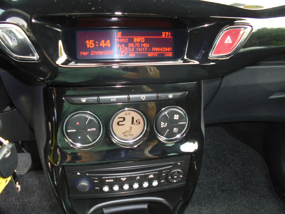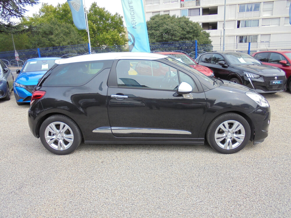 CITROEN DS3 (HDi 90 Airdream So Chic BMP6) NOIR.Bluetooth,Roue de secours,Clim auto,Condamnation centralisée au plip HF,Lève-vitres AV électriques,Ordinateur de bord,Projecteurs antibrouillard,Régulateur - limiteur de vitesse,Rehausse de siège conducteur,Rétroviseurs électriques,Système Audio CD RDS MP3 avec prise Jack,Vitrage AR surteinté,Volant cuir,Volant mousse réglable en hauteur et en profondeur, 6 vitesses, 5 places, puissance fiscal : 5, puissance din : 90, émission de CO2 : 99 g/km.