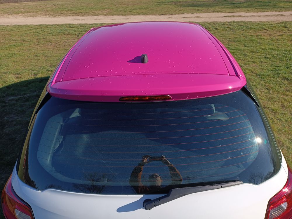Carrosserie bi ton Blanche avec toit et rétroviseurs couleur Fushia