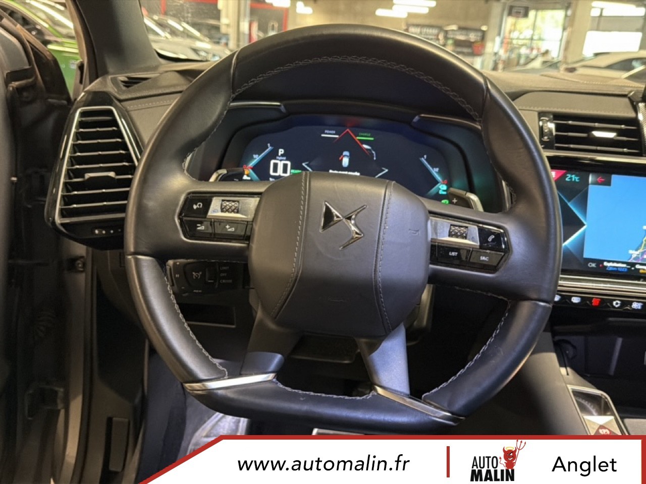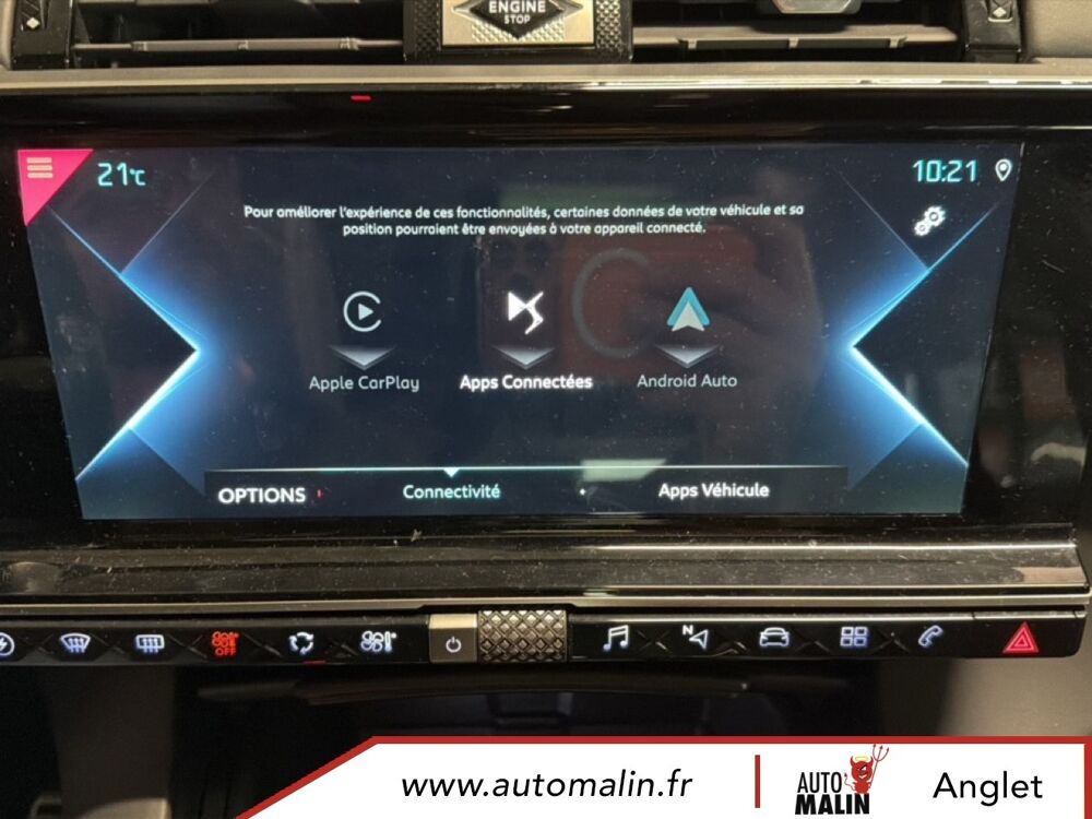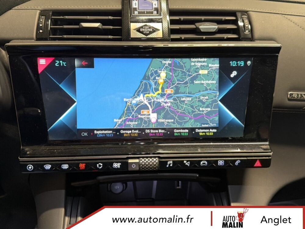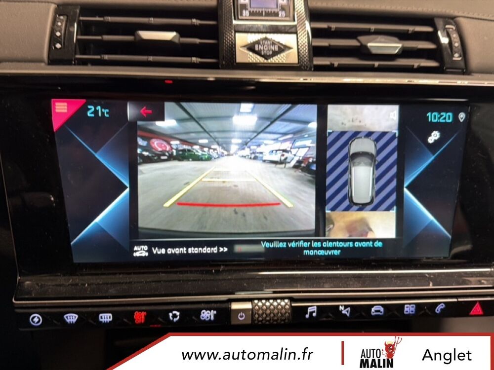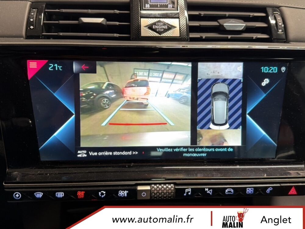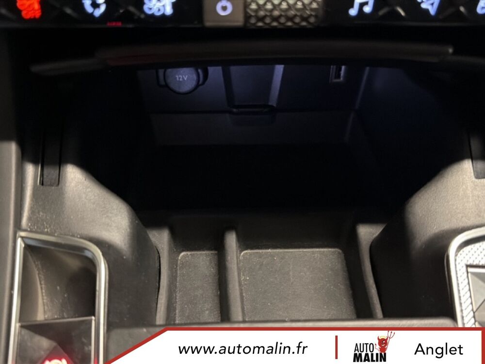 Equipements supplémentaires : ABS avec repartiteur electronique de freinage (REF) et Aide au Freinage d'Urgence (AFU), ABS, AFU, ESP, REF, Acces et demarrage mains libres, Accoudoir central AR avec porte-gobelets, Accoudoir central AV avec rangement, Accoudoir central/de porte similicuir graine et crosses de portes similicuir Noir Basalte, Accoudoir central/de porte TEP Isabella, Aide au demarrage en pente, Aide au stationnement AR, Aide au stationnement AV et AR, Aide au stationnement AV et AR avec Camera de recul, Airbags frontaux aux places AV avec desactivation par cle de l'airbag passager, Airbags rideaux aux places AV, Airbags rideaux aux places AV et AR, Alerte active de franchissement involontaire de ligne, Alerte Attention Conducteur, Alerte Attention Conducteur par camera, Allumage automatique des feux de detresse en cas de forte deceleration, Allumage automatique des projecteurs, Antenne radio integree dans la lunette AR, Aumonieres de dos sur les sieges AV, Avertisseur bi-ton, Badge de planche de bord RIVOLI, Banquette AR 2/3 - 1/3 avec 3 appuie-tete, Banquette AR 2/3 - 1/3 permettant un plancher plat, Banquette AR inclinable electriquement, Banquette AR rabattable depuis le coffre, Barres de toit aluminium, Boite a gants refrigeree, Cable de recharge mode 2 standard 1,8 kW (8 A), Calandre surmontee de l'embleme E-TENSE, Camera de recul, Chargeur embarque de 7,4 kW, Chargeur pour une recharge plus rapide de la batterie, Chargeur sans fil, Clignotants impulsionnels 3 coups, Climatisation automatique bi-zone, Climatisation avec aerateurs aux places AR, Commutation automatique des feux de route, Condamnation automatique des portes, du hayon et de la trappe a carburant en roulant, Controle de stabilite de l'attelage, Controle de traction intelligent, Controle dynamique de stabilite (ESP) avec antipatinage des roues (ASR), Coques de retroviseurs exterieurs Noir Perla Nera, Crochet d'arrimage dans le coffre au dessus du plancher de coffre x4, Detection de sous-gonflage, Direction a assistance variable, Double canule d'echappement chromee, DS ACTIVE LED VISION, DS ACTIVE SCAN SUSPENSION, DS CONNECT NAV avec radio numerique, DS Wings chromees, Eclairage a LED, Eclairage d'accompagnement automatique, Eclairage d'accueil a louverture du vehicule, Eclairage d'accueil automatique, Eclairage d'ambiance integral a LED, Entourage des vitres laterales chrome, Essuie-vitre AV a declenchement et cadencement automatiques, Essuie-vitre AV automatique, Feux AR 3D (traitement ecailles), Feux AR 3D a LED, Feux diurnes a LED, Filtre a odeurs avec charbon actif, Filtre a pollen, Fixations ISOFIX a la place passager AV et aux places laterales AR, Frein de stationnement electrique automatique, Freinage d'urgence automatique, Grille de calandre noir brillant, Guide utilisateur numerique, Hayon motorise, Indicateur de changement de rapport, Indicateur de rapports engages, Interieur Cuir Gris Perle, Interieur Cuir Noir Basalte, Jonc sur volet et bouclier AR chrome, Kit de depannage provisoire de pneumatiques, Leve-vitres AV et AR electriques avec fonction antipincement, Leve-vitres AV/AR electriques, sequentiels et avec fonction antipincement, Limiteur de vitesse, Lunette AR chauffante, Mirror Screen, Montre B.R.M. R180, Navigation, NAVIGATION avec radio numerique, Ouverture et fermeture des vitres a distance, Pack Auto Confort, Pack Modularite, Pack Securite, Pack Securite Etendue avec freinage durgence automatique, Pack Sieges Confort, Pack Sieges Electriques, Palettes au volant, Panneaux de portes en cuir Nappa Gris Perle, Pare-brise acoustique, Pare-brise teinte et acoustique, Pare-soleil rembourres avec eclairage a LED, Pedalier et le repose-pied aluminium, Pieds de retroviseurs exterieurs couleur carrosserie, Planche de bord en Cuir Nappa Gris Perle, Planche de bord en cuir Nappa Noir Basalte, Planche de coffre avec zone de rangement integree pour le cable de recharge, Plancher de coffre modulable a 2 positions, Poignees de portes couleur carrosserie, Prise 12 V, Prise USB Data a l'AV, Prises USB x2 aux places AR, Projecteurs antibrouillard a LED, Radio numerique terrestre (DAB), Rangements lateraux, Rangements lateraux dans le coffre, Reconnaissance des panneaux de vitesse et preconisation, Reconnaissance etendue des panneaux de circulation, Reconnaissance vocale, Regulateur/Limiteur de vitesse, Retroviseur interieur electrochrome sans cadre, Retroviseurs exterieurs rabattables electriquement avec projection au sol du logo DS, Retroviseurs exterieurs rabattables electriquement et indexes a la marche AR avec, Sabot AV finition Gris