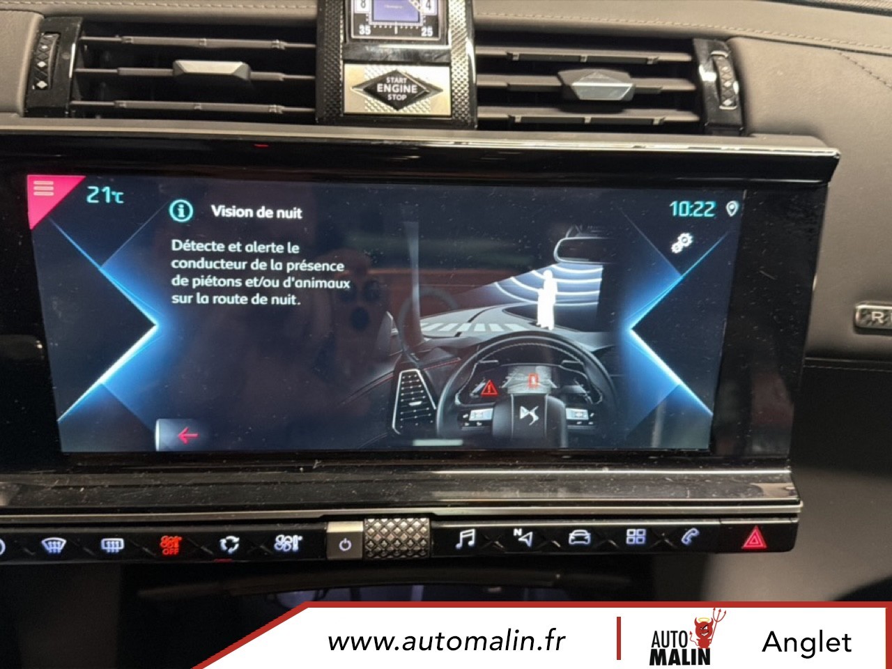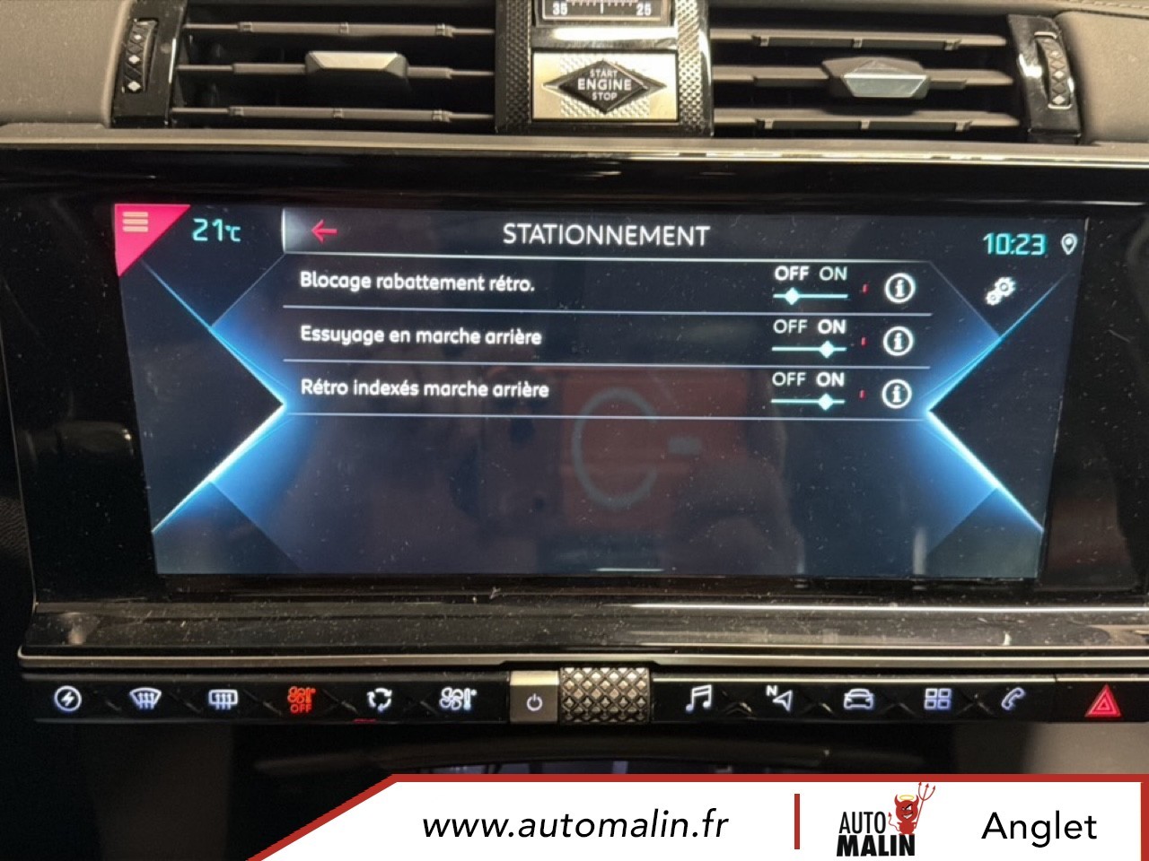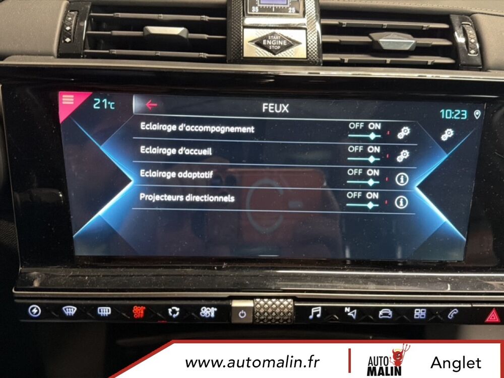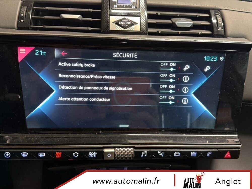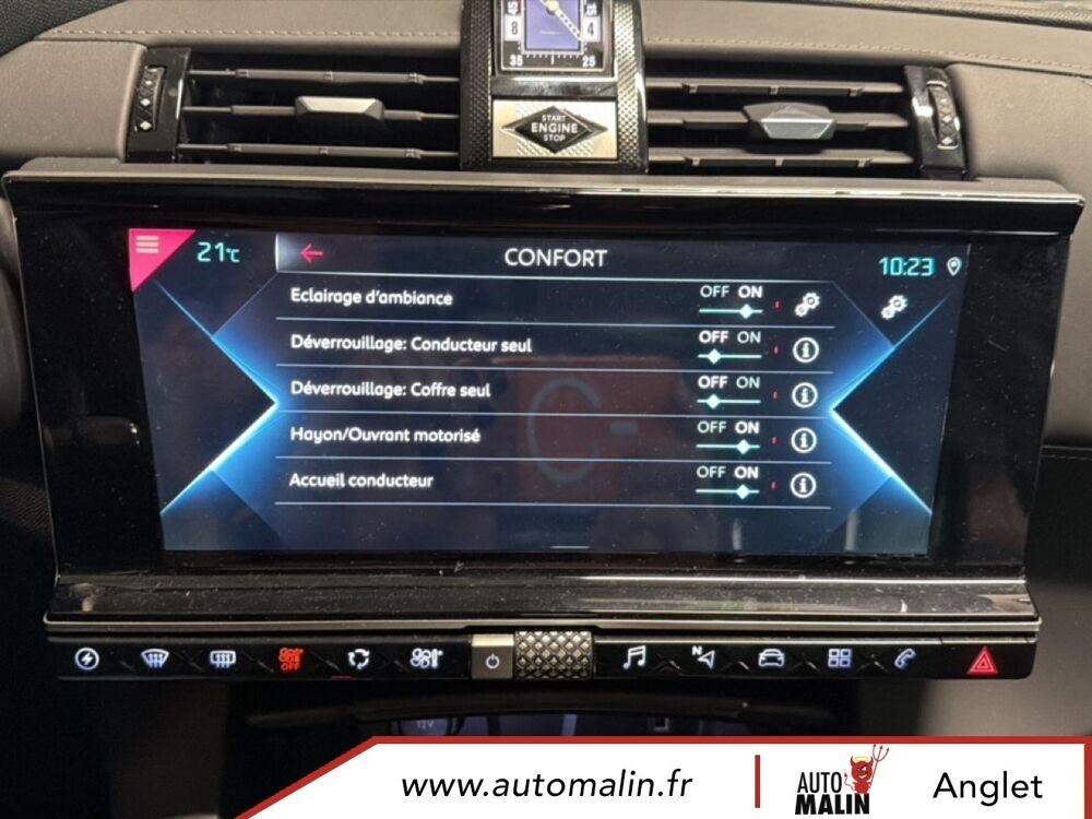 Aluminium, Sangle de coffre, Services Pack Navigation, Seuil de coffre chrome, Seuils de portes en metal avec Trame DS, Siege conducteur electrique avec memorisation de position de conduite, Sieges AV avec reglages lombaires electriques, Sieges AV reglables en hauteur, Surtapis AV/AR, Surveillance Active d'Angle Mort, Systeme audio Analogique a 8 HP avec prise USB et Bluetooth, Systeme sonore polyphonique, Temoin et alerte sonore de non-bouclage des ceintures de securite AV/AR, Trappe de recharge cote gauche, Verins d'ouverture et de maintien du capot moteur, Verrouillage automatique des portes en roulant, Vitres AR et lunette AR surteintees, Vitres AR et lunette surteintees, Vitres AV et AR surteintees et feuilletees, Vitres laterales AV et AR surteintees et feuilletees, Volant Cuir gaine main avec commandes integrees, Volant reglable en hauteur et profondeur, Zone De Danger, HiFi FOCAL Electra, Pack DS Night Vision, Pack DS Urban, Teinte Caisse metallisee Gris Artense, Toit ouvrant panoramique.