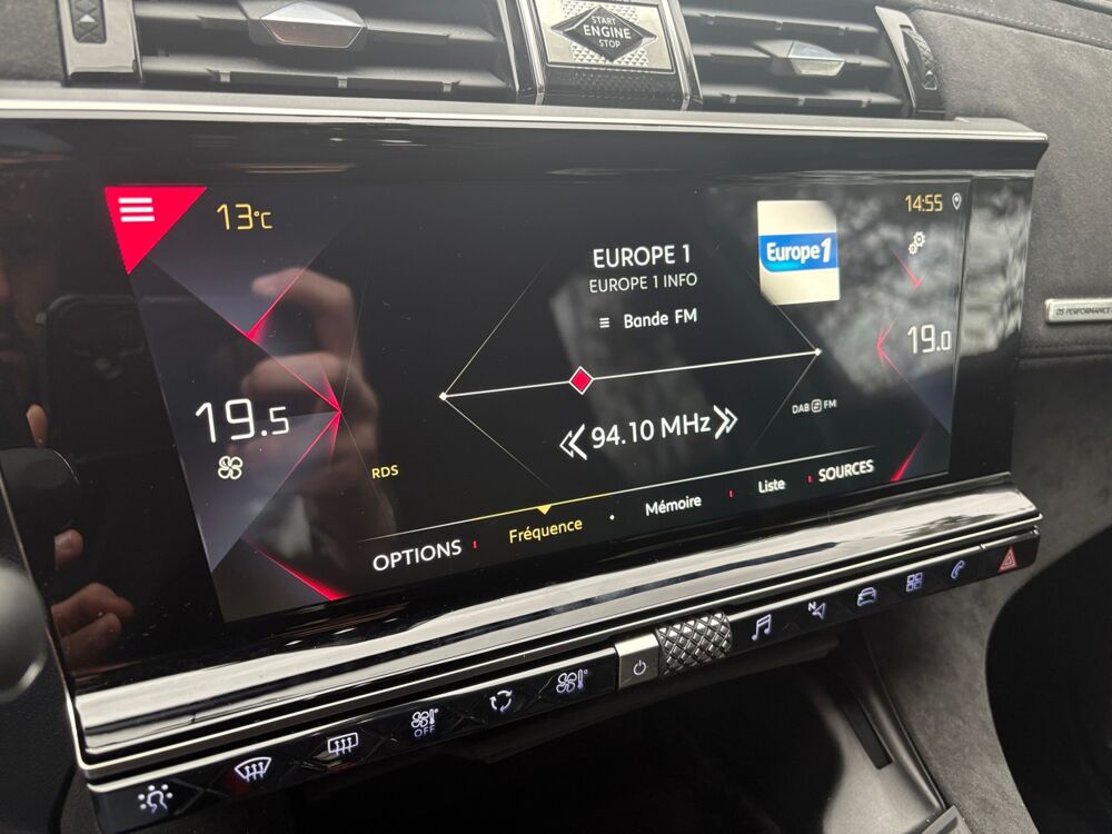 8 Haut parleurs,ABS,Accoudoir arrière,Accoudoir central AR avec trappe à skis,Accoudoir central AV avec rangement,AFIL,Aide au démarrage en côte,Aide au freinage d'urgence,Aide au stationnement arrière,Airbag conducteur,Airbag passager,Airbag passager déconnectable,Airbags latéraux arrière,Airbags latéraux avant,Airbags rideaux,Airbags rideaux AR,Allumage des phares automatique,Antipatinage,Appel d'Assistance Localisé,Appel d'Urgence Localisé,Assistance de maintient de trajectoire,Bacs de portes arrière,Bacs de portes avant,Banquette 1/3-2/3,Banquette AR rabattable,Banquette AR rabattable automatiquement,Boite à gants éclairée et réfrigérable,Capteur de pluie,Ceinture de vitrage chromée,Climatisation automatique bizone,Combiné numérique 12",Commandes vocales,Contrôle de Traction Intelligent,Détecteur de sous-gonflage,DS CONNECT NAV avec radio numérique,Echappement à double sortie,Eclairage au sol,Eclairage d'ambiance,Eclairage statique d'intersection,Ecran couleur,Ecran tactile,ESP,Feux arrière à LED,Feux de freinage d'urgence,Feux de jour à LED,Filtre à Pollen,Fixation Isofix siège passager avant,Fixations Isofix aux places arrières,Follow me home,Freinage automatique d'urgence,Frein stationnement électrique automatiq,GPS Cartographique,Inspiration DS PERFORMANCE Line,JA 19" BEIJING,Kit mains-libres Bluetooth,Limiteur de vitesse,Lunette arrière surteintée,Miroir de courtoisie conducteur éclairé,Miroir de courtoisie passager éclairé,Ordinateur de bord,Pack Sièges Confort,Palettes changement vitesses au volant,Pare-brise acoustique,Pédalier et repose-pied en aluminium,Phares antibrouillard LED,Phares xénon,Poches d'aumonières,Poignées ton carrosserie,Prise 12V,Prise USB,Projecteurs antibrouillard à LED,Radio numérique DAB,Reconnaissance panneaux de signalisation,Répartiteur électronique de freinage,Répétiteurs de clignotant dans rétro ext,Rétro. Int. électrochrome sans cadre,Rétroviseurs dégivrants,Rétroviseurs électriques,Rétroviseurs extérieurs rabattables électriquement avec projection au sol du logo DS,Rétroviseurs rabattables électriquement,Services connectés,Siège cond. avec réglage lombaire électr,Siège conducteur réglable en hauteur,Siège passager réglable en hauteur,Sièges AV avec réglage lombaire électr,Surtapis avant et arrière,Système de détection de somnolence,Système Hi-Fi Surround,Témoin de bouclage des ceintures AV,Verrouillage centralisé à distance,Verrouillage centralisé des portes,Vitres arrière électriques,Vitres arrière surteintées,Vitres avant électriques,Volant cuir,Volant réglable en profondeur et hauteur