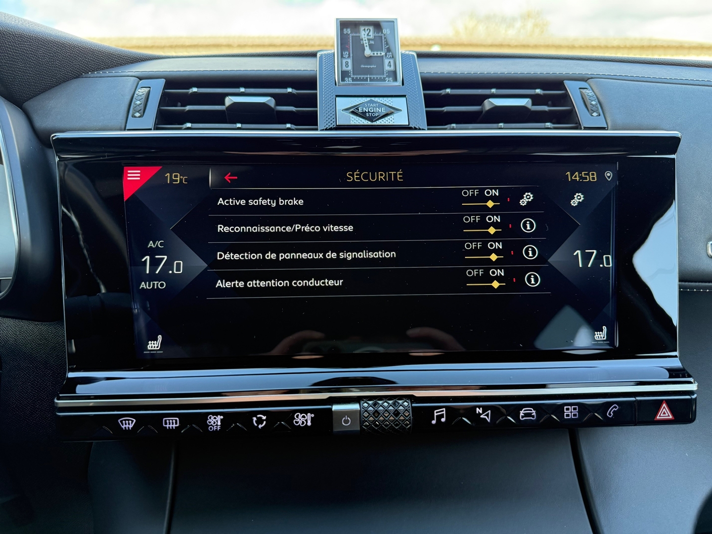 6 AIRBAGS,ACCOUDOIR CENTRAL,FREINAGE ACTIF D'URGENCE,ALERTE FRANCHISSEMENT LIGNE BLANCHE,AIDE DEMARRAGE EN COTE,FEUX ANTI-BROUILLARD,BARRES DE TOIT,BLUETOOTH,CACHE BAGAGES,ALLUMAGE AUTO DES FEUX,ESSUIE GLACE AUTO,NAVIGATION CARTE EUROPE,CLE INTELLIGENTE,CLIMATISATION BIZONE,CLIMATISATION AUTOMATIQUE ,COMMANDE VOCALE,SELLERIE CUIR,DIRECTION ASSISTEE,DETECTION ANGLE MORT,BASCULEMENT AUTO DES FEUX ROUTE/CROISEMENT,FEUX DE VIRAGE,PACK HIFI FOCAL ELECTRA,FREIN STATIONNEMENT ELECTRIQUE,FEUX FULL LED,GPS ,JANTES ALLIAGE,KIT CREVAISON,AIDE AU MAINTIEN DANS LA VOIE,LECTEUR MP3,DETECTEUR DE MARCHE AR,DETECTEUR AVANT,RADIO,RECONNAISSANCE PANNEAUX,REGULATEUR ADAPTATIF,REGULATEUR DE VITESSE,RETROS RABATTABLES,SIEGES CHAUFFANTS ,SIEGES CLIMATISÉS,SIEGE CONDUCTEUR ELECTRIQUE A MEMOIRE DE POSITION,SIEGES MASSANTS,SIEGES ELECTRIQUES,STOP & START,4 VITRES ELECTRIQUES,VITRES SURTEINTÉES