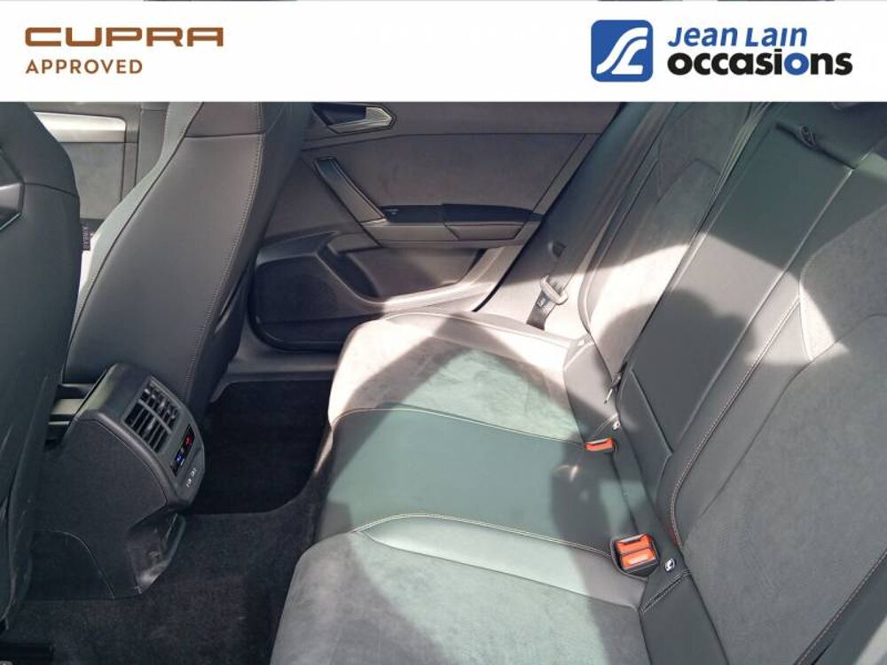 - Design intérieur Dynamic - Sièges baquets suédine Noir Asphalte avec poinçonnage et surpiqûres cuivrées - Logos CUPRA estampés sur les appuie-têtes - Planche de bord noire texturée avec inserts Dark Alu - Contre-portes suédine noire avec poinçonnage cuivré - Conducteur : siège électrique, dont réglage lombaire, à mémoire - Passager : réglage manuel de la hauteur et lombaire - Conducteur + passager chauffants