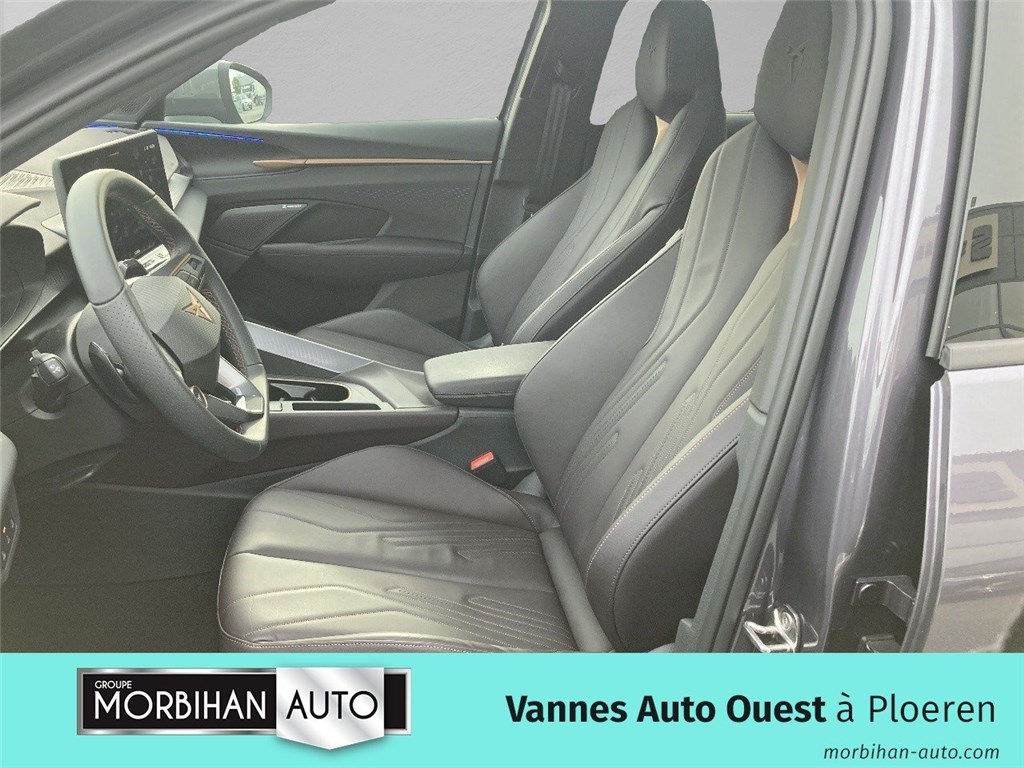 - Design Intérieur High Canyon (sièges baquets cuir Rouge Bordeaux avec surpiqûres cuivrées) - Logos CUPRA embossés sur les appuie-têtes - Planche de bord Rouge Bordeaux avec aérateurs cuivrés - Contre-portes en TEP noir texturé - Ciel de pavillon noir - Siège conducteur : chauffant avec réglage électrique à mémoire, y compris réglage lombaire - Siège passager : chauffant avec réglage électrique, y compris lombaire