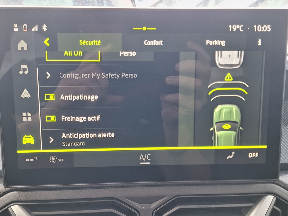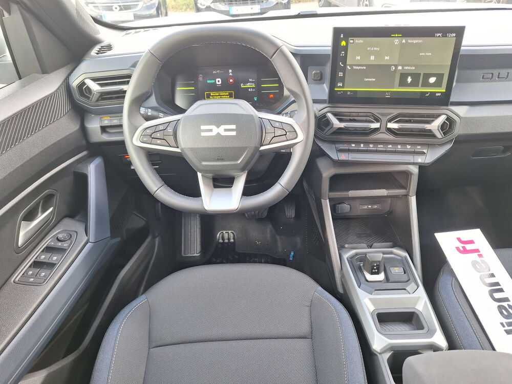 Equipements : Media Nav Live ( Navigation avec trafic en temps reel + Systeme audio 3D Arkamys, 6HP, ecram 10,1"), Sellerie specifique "Denim" avec logo Dacia reflechissant, Signature lumineuse en "Y" a LED, Tableau de bord numerique 7"
