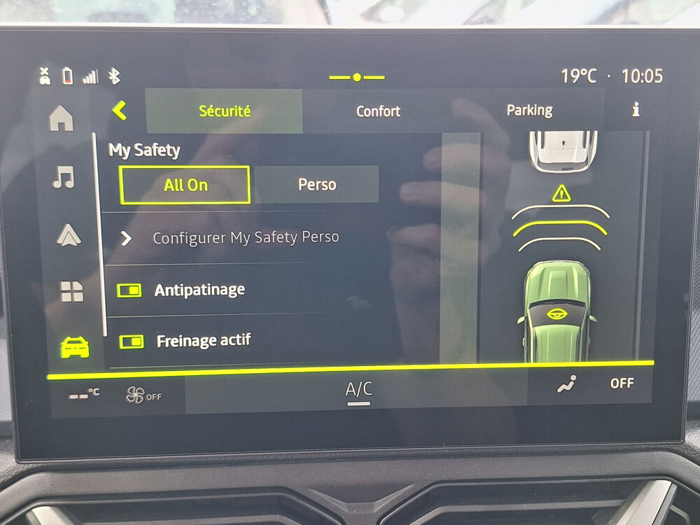 Equipements supplémentaires : Airbag AV conducteur et passager, Airbag passager deconnectable, Airbags lateraux AV et rideaux, Alerte franchissement de ligne et assistant maintien dans la voie, Allumage des feux automatique et essuie-glace automatiques, Antenne radio 30cm, Appel SOS (E-call), Avertissement distance de securite, Banquette AR rabattable 40/60, Barres de toit longitudinales, Boite de vitesse automatique 6, Boucliers ton carosserie, Camera de recul, Climatisation automatique, Commutation automatique feux de croisement/route, Console centrale semi haute avec accoudoir, Coques de retroviseurs Gris Megalithe, Detection de perte de pression des pneus, Direction assistee, Feux de croisement a LED, Frein de parking electrique, Jantes alliage diamantees 18'' TAGASAN, Kit de gonflage, Leve-vitres AR electriques, Leve-vitres AV electriques, Lunette AR degivrante, Mode eco, My Safety Switch (bouton de deconnexion des aides a la conduite), Ouverture du hayon manuelle, Plancher de coffre plat, Prise 12V coffre, Projecteurs antibrouillard, Radars de recul, Recharge smartphone par induction, Reconnaissance des panneaux de signalisation avec alerte de survitesse, Regulateur et limiteur de vitesse, Repetiteurs lateraux a LED, Retroviseur interieur jour/nuit, Retroviseurs exterieurs electriques, degivrants et rabattable automatiquement, Siege conducteur reglable en hauteur et profondeur, Systeme anti-blocage des roues (ABS), Systeme de controle de traction (TCS), Systeme de controle de trajectoire (ESC) et aide au demarrage en cote, Systeme de fixation Isofix, Systeme de freinage d'urgence avance (pieton, deux-roues et intersection), Systeme de surveillance de l'attention du conducteur, Verrouillage centralisee, Vitres AR surteintees, Volant reglable en hauteur et en profondeur, Volant Soft Feel.