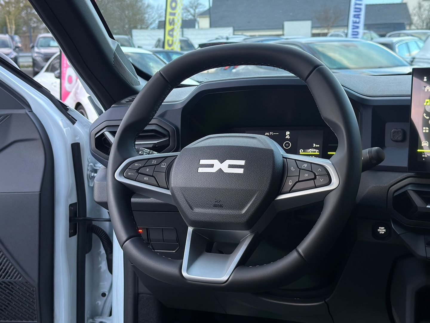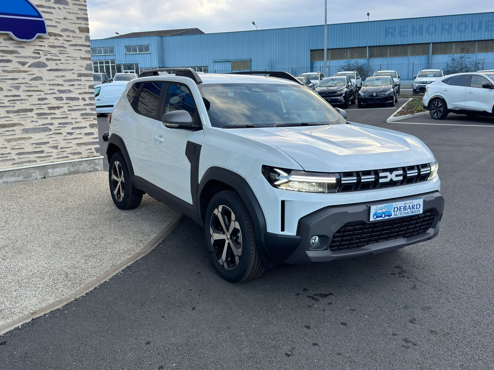 Blanc Glacier,Accoudoir central AV avec rangement,ABS,Aide au démarrage en côte,Banquette 1/3-2/3,Caméra de recul,Capteur de luminosité,Capteur de pluie,Clim automatique,Commande Mode ECO,Démarrage sans clé,Ecran multifonction couleur,Ecran tactile,ESP,Fonction MP3,GPS Cartographique,Guidage pour manoeuvre de stationnement,Interface Media,Jantes Alu 18" diamantées TAGASAN,Limiteur de vitesse,Ordinateur de bord,Phares antibrouillard,Phares avant LED,Radar de stationnement AR,Reconnaissance panneaux de signalisation,Régulateur de vitesse,Rétroviseurs dégivrants,Rétroviseurs électriques,Rétroviseurs rabattables électriquement,Spécifique "Denim" logo Dacia réfléchiss,Système d'accès sans clé,Verrouillage centralisé à distance,Vitres arrière électriques,Vitres arrière surteintées,Vitres avant électriques,Volant multifonction