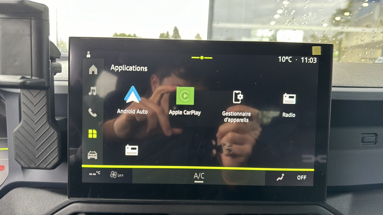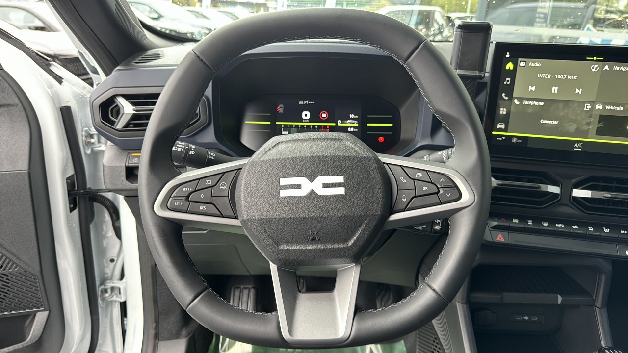 Blanc Glacier,Nouveau Modèle RESTYLE/NOUVELLE CALANDRE/NOUVEAU LOGO,Volant réglable en profondeur et hauteur,Volant multifonction,Vitres avant électriques,Vitres arrière surteintées,Vitres arrière électriques,Verrouillage centralisé des portes,Verrouillage centralisé à distance,Verrouillage auto. des portes en roulant,Système d'accès sans clé,Spécifique "Denim" logo Dacia réfléchiss,Rétroviseurs rabattables électriquement,Rétroviseurs électriques,Régulateur de vitesse,Radar de stationnement AR,Prise USB,Prise 12V,Phares avant LED,Phares antibrouillard,Ordinateur de bord,Limiteur de vitesse,Kit mains-libres Bluetooth,Jantes Alu,Interface Media,Indicateur de limitation de vitesse,GPS Cartographique,Fonction MP3,Fixations Isofix aux places arrières,Feux de route automatiques,Feux de jour à LED,ESP,Ecran tactile,Ecran multifonction couleur,Démarrage sans clé,Clim automatique,Capteur de pluie,Capteur de luminosité,Caméra de recul,Barres de toit,Banquette arrière 3 places,Banquette AR rabattable,Banquette 1/3-2/3,Airbag passager,Airbag conducteur
