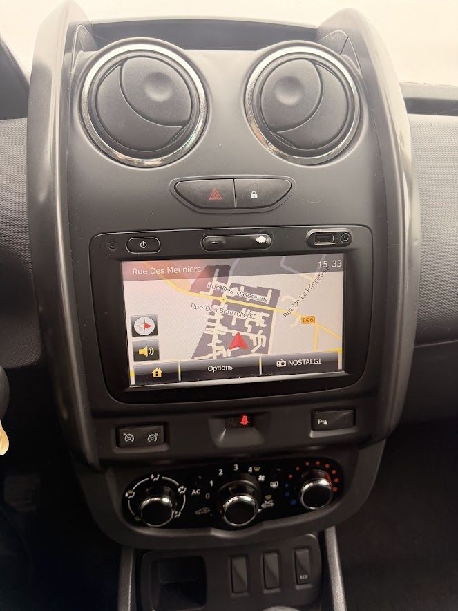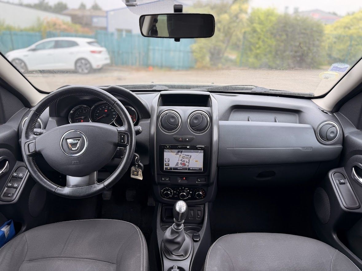 ABS,Aide au freinage d'urgence,Airbag conducteur,Airbag passager déconnectable,Airbags latéraux avant,Antidémarrage électronique,Antipatinage,Bacs de portes avant,Banquette 1/3-2/3,Banquette AR rabattable,Banquette arrière 3 places,Barres de toit,Boite à gants fermée,Boucliers AV et AR couleur caisse,Ceintures avant ajustables en hauteur,Clim manuelle,Compte tours,EBD,Ecran multifonction couleur,Ecran tactile,ESP,Essuie-glace arrière,Filtre à particules,Fixations Isofix aux places arrières,GPS Cartographique,Jantes Alu,Kit mains-libres Bluetooth,Lampe de coffre,Lampes de lecture à l'avant,Limiteur de vitesse,Lunette AR dégivrante,Lunette arrière surteintée,Ordinateur de bord,Phares antibrouillard,Phares halogènes,Poches d'aumonières,Pommeau de levier vitesse en cuir,Porte-gobelets avant,Pré-équipement Radio,Préparation Isofix,Prise 12V,Prise auxiliaire de connexion audio,Prise USB,Radar de recul,Radio CD MP3,Régulateur de vitesse,Rétroviseurs électriques,Rétroviseurs électriques dégivrants,Sellerie avec broderie " Duster ",Siège conducteur réglable en hauteur