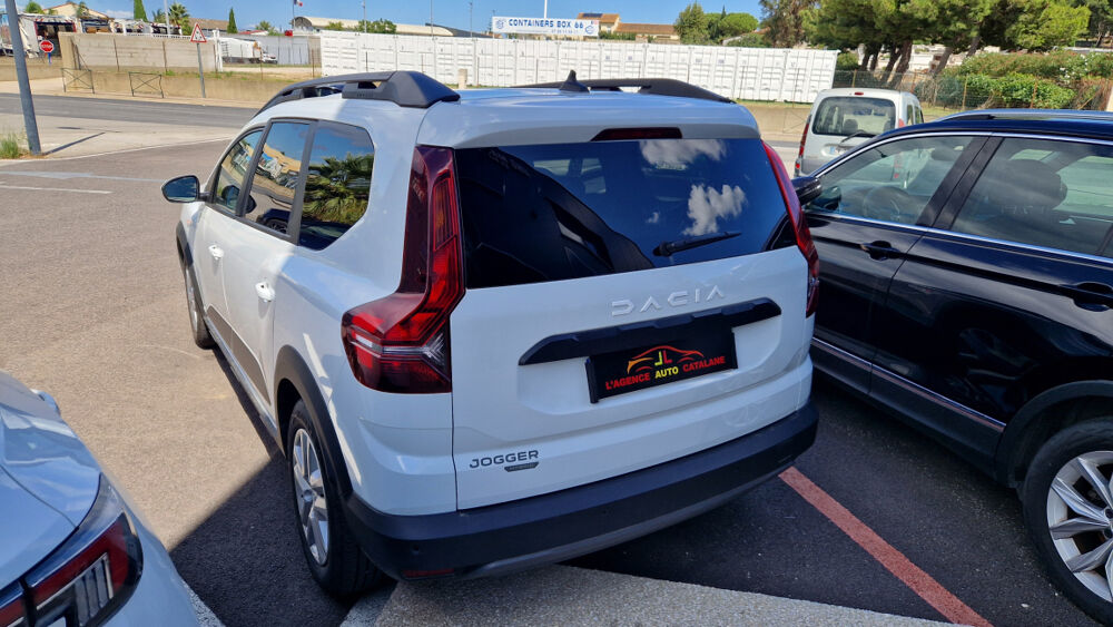 DACIA JOGGER (Jogger Hybrid places Expression) BLANC.3 appuis-têtes AR, Aide au parking AR, Airbag frontal conducteur et passager, Airbag frontal passager désactivable, Airbag latéral AV : thorax + rideau, Allumage des feux et essuie-glace automatiques, Assistance au freinage d'urgence + allumage des warnings, Banquette AR avec dossier rabattable en portefeuille 1/3 -2/3, Barres de toit modulables, Bouton appel d'urgence, Classe energetique 1, Clé 3 boutons, Climatisation manuelle, Cluster couleur TFT 7'', Condamnation centralisée des portes, Condamnation des ouvrants en roulant, Console semi-haute + rangement fermé avec accoudoir, Eclairage du coffre, Eclairage plafonnier AR, Enjoliveur 16'' Saria, Enjoliveurs bas de porte coffre, Enjoliveurs FLEX WHEEL 16'' SARIA, Feux anti brouillard, Feux de jour à LED, Filtre à particules, Frein de parking électrique, Harmonie intérieure, Kit de gonflage, Lève-vitre conducteur électrique impulsionnel, Lève-vitres AR électriques, Media display (écran 8'', réplication smartphone, 4 haut-parleurs, 1 port USB), Mode éco, Ordinateur de bord, Peinture opaque, Rappel de bouclage de ceintures, Régulateur de vitesse, Rétroviseur intérieur jour/nuit, Rétroviseurs extérieurs, Rétroviseurs extérieurs réglables électriquement + dégivrants, Roues tole 16'', Sellerie, Sellerie Confort avec surpiqures, Sellerie Expression avec surpiqures, Siège conducteur réglable en hauteur, Signature lumineuse DACIA en Y à LED, Système anti-blocage des roues (ABS), Système de contrôle de trajectoire (ESC) et aide au démarrage en côte, Système de fixation Isofix, Système de freinage d'urgence autonome à des vitesses interurbaines 7-170km/h, Tapis de coffre, Vitres, portes AR, custode et lunette AR surteintées, Volant réglable en hauteur et en profondeur, Volant Soft Feel TEP, 6 vitesses, 5 places, puissance fiscal : 5, puissance din : 140, émission de CO2 : 0 g/km.