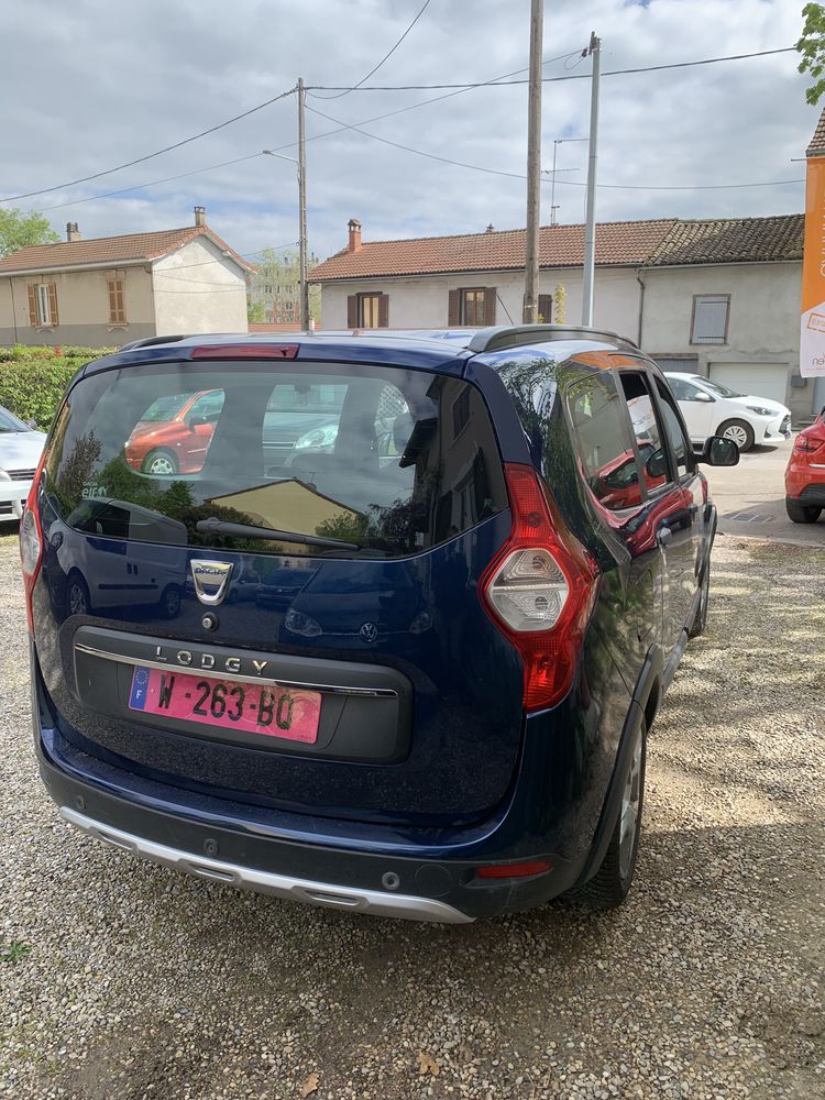 Dacia Lodgy TCe 115 5 places Stepway, 1ère main, motorisation essence, du 13 juillet 2018, 91 100 km, 6 CV, 4 portes avec hayon arrière, boîte manuelle, couleur : bleu métallisé.Principaux équipements :