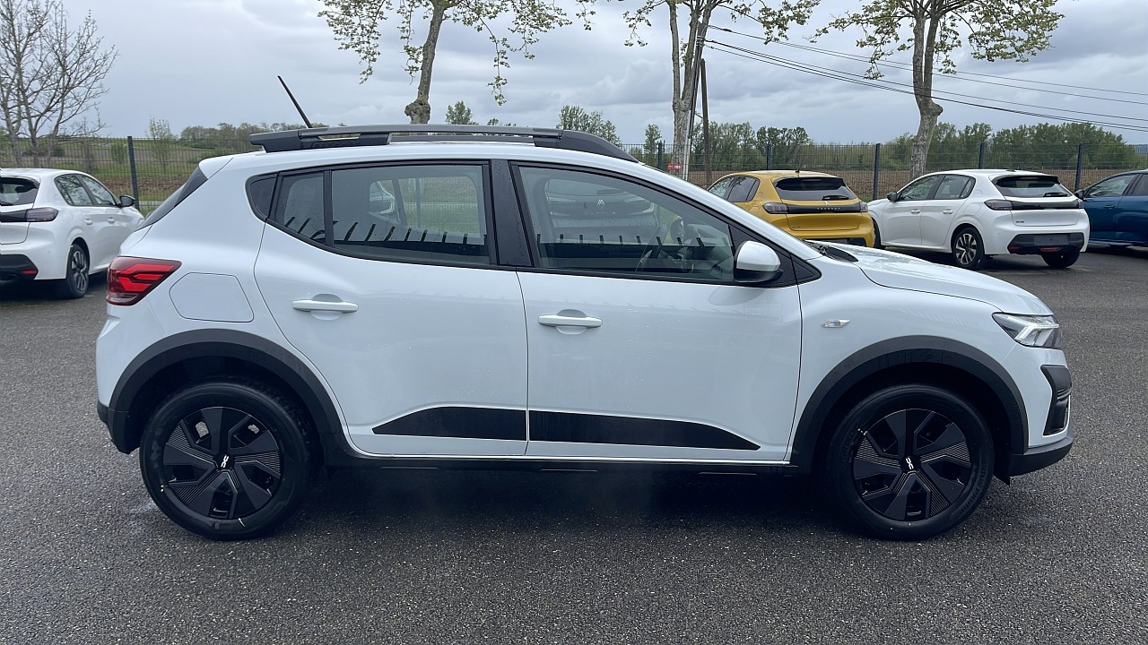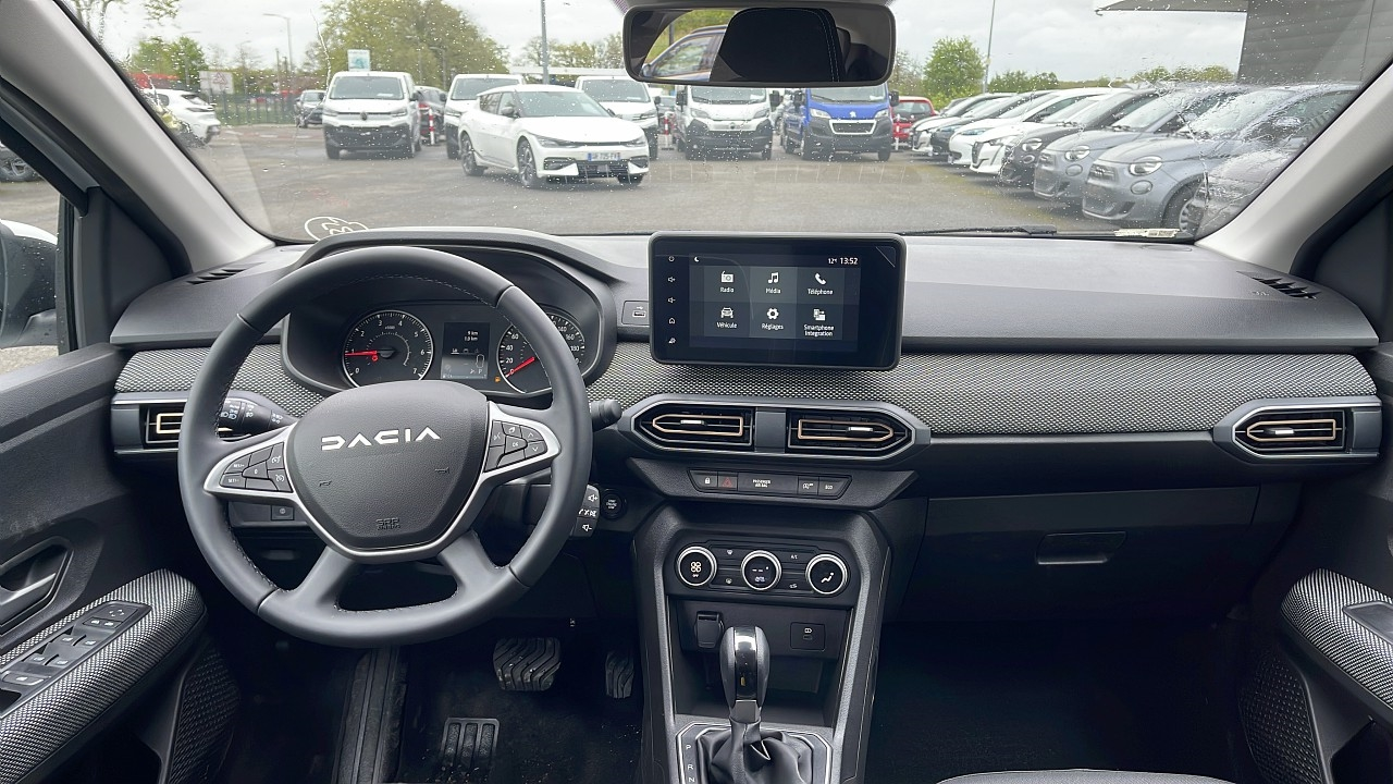 Climatisation automatique,Roue de secours,Blanc Glacier,Caméra de Recul,Carte Dacia Mains Libres (sans clé),ABS,Accoudoir central AV,Aide au démarrage en côte,Banquette 1/3-2/3,Barres de toit,Capteur de luminosité,Capteur de pluie,EBD,Ecran tactile,ESP,Fixations Isofix aux places arrières,Fonction MP3,Interface Media,Kit mains-libres Bluetooth,Limiteur de vitesse,Ordinateur de bord,Phares antibrouillard,Radar de stationnement AR,Régulateur de vitesse,Rétroviseurs électriques,Siège conducteur réglable en hauteur,Tissu Stepway avec surpiqûres,Verrouillage centralisé à distance,Vitres arrière électriques,Vitres avant électriques